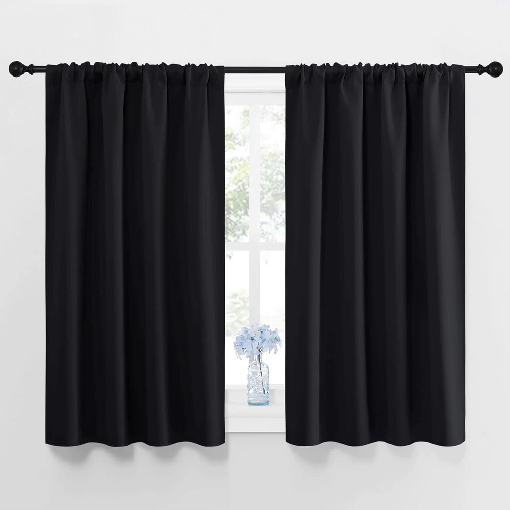 Store New Arrivals Add to Favorite View Feedback Contact Black Out Short Curtain Panels for Kitchen - Energy Smart Decoration Thermal Insulating Blackout Drapes/Draperies for Bathroom Small Window (2 Panels,42 in X 45 in (W X L)) Description Item model number NTRPBLKSLD2-ALL Number of Items 2 Pattern Solid Country of Origin China Package Weight 0.69 Kilograms Import Imported Unit Count 1.0 Count Product Dimensions 45"L x 42"W Batteries required No Material Fabric Top Style Grommet, Rod Pocket, Rod Model Name 2 Seasons Winter Is Discontinued By Manufacturer No Closure Type Rod pocket Curtain Form Drapes Item Weight 1.52 pounds Compatible with Rod Size 2 Inches Special Feature Adjustable Hanging Method Rod Pocket Color Black Size 42"W x 45"L (Pack of 2) Fabric Type 100% Polyester Number of pieces 2 100% Polyester Imported ELEGANT DESIGN: 2 panels per package. Each Blackout Curtain Panel measures 42 inches wide x 45 inches long. The NICETOWN drapery is constructed with rod pocket, fitting the curtain rod of your choice up to 2 inches in diameter, making the curtains easy to install and slide. LENGTH ADJUSTABLE: Don't worry if this blackout curtains are a few shorter than your windows. You can hang this curtain panels with rings and hooks. That could be adjustable for height max 3 inches. Hooks space distance around 4-6 inches. AMAZING MATERIAL: This unique, soft and heavy-duty blackout fabric is woven with three-layer construction. The middle layer of black yarns creates a curtain panel that is excellent for blocking out 85%-99% of light (Dark color works better on blocking light) while providing privacy. GOOD CHOICE: Perfect drapery option for anyone seeking to block daylight, take a nap, or keep sun glare off your TV. Besides, you can choose blackout valance and sheer curtains in the NICETOWN to match. Such curtain sets provide a more permanent harmonious window dressing. EASY MAINTENANCE: Machine or hand washable. Mild detergent no bleaching. Low-temperature ironing. Measure your pole and window size before you choosing curtains. Product Description 1.9“ DIAM ROD POCKET Recommended with no greater than a 1.7-inch rod for maximum movement. HIGH DENSITY SUTURE The curtain fabric looks more exquisite and worthwhile. SAME FABRIC FRONT AND BACK The same fabric for both sides makes the curtain a simple style. TRIPLE WEAVE TECHNOLOGY Provide you with a perfect shading performance of about 50%-99% Blackout. DO WELL IN THERMAL INSULATED After insulating with the curtain, the temperature drops a lot. 1 ROD POCKET 2 HIGH DENSITY SUTURE 3 FRONT AND BACK 4 TRIPLE WEAVE FABRIC 5 THERMAL INSULATED COLOR SHADING DISPLAY THE COLOR OF THE ACTUAL ITEM MAY VARY SLIGHTLY IN DIFFERENT ENVIRONMENT The video showcases the product in use. The video guides you through product setup. The video compares multiple products. The video shows the product being unpacked. The video showcases the product in use. The video guides you through product setup. The video compares multiple products. The video shows the product being unpacked. POPULAR CURTAINS & RODS IN NICETOWN Customer Reviews 4.5 out of 5 stars 539 4.6 out of 5 stars 1,773 4.7 out of 5 stars 8,328 4.5 out of 5 stars 404 4.6 out of 5 stars 4,186 4.7 out of 5 stars 24,417 4.6 out of 5 stars 988 Price $31.99 $ 31 . 99 $19.95 $ 19 . 95 $14.49 $ 14 . 49 $15.96 $ 15 . 96 $19.16 $ 19 . 16 $10.19 $ 10 . 19 $32.93 $ 32 . 93 Top Styles Rod Pocket/Back Tab/Hook Belt Grommet Grommet Rod Pocket & Back Tab Rod Pocket Grommet - Fabric Faux Linen Triple Weave Thick Linen Faux Linen Sheer Faux Linen Sheer Faux Linen Sheer Voile Sheer Aluminum Light Filtering √ √√ √√√ √√√ √√√ √√√√ - Privacy √√√√√ √√√√ √√√ √√√ √√√ √ - Room Darkening ✔ ✔ ✔ ✘ ✘ ✘ ✘ ABOUT US We offer the best prices around on high quality products. Our E-store includes media such as books, movies, music and games while offering electronics, toys, sporting apparel, clothing, tools, general home, garden items and more. SHIPPING We are always working hard to ensure your package arrives as soon as possible. Please understand that some factors like weather, high postal traffic, and the performance of shipping companies are outside of our control. We offer free shipping to the lower 48 states and ship within 2 business days of payment, usually sooner. We do not accept P.O. Boxes. Please provide a physical address. RETURNS We offer a 30-Day Return Policy on items which you are not completely satisfied with. You have the option for a full-refund or an exchange of the item. No returns are available on items shipped outside of the USA. PAYMENT We accept PayPal. CONTACT US This page content is yet to come Please ad us to your favorite seller and visit again later Thank You CUSTOMER SATISFACTION We try our very best to make sure every customer is completely satisfied. If there's a problem, message us! We're happy to help.