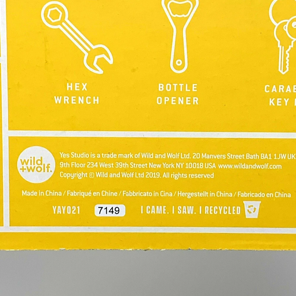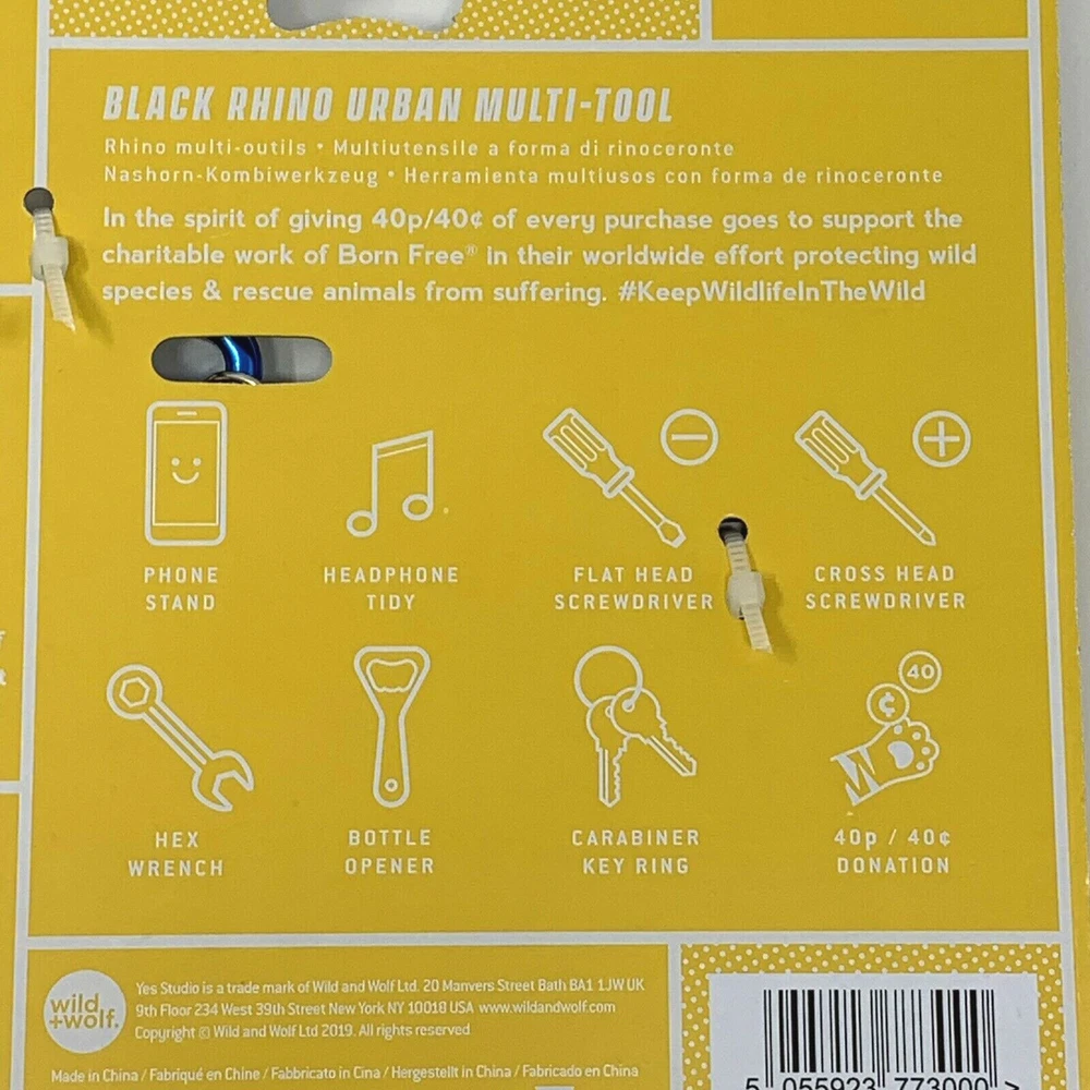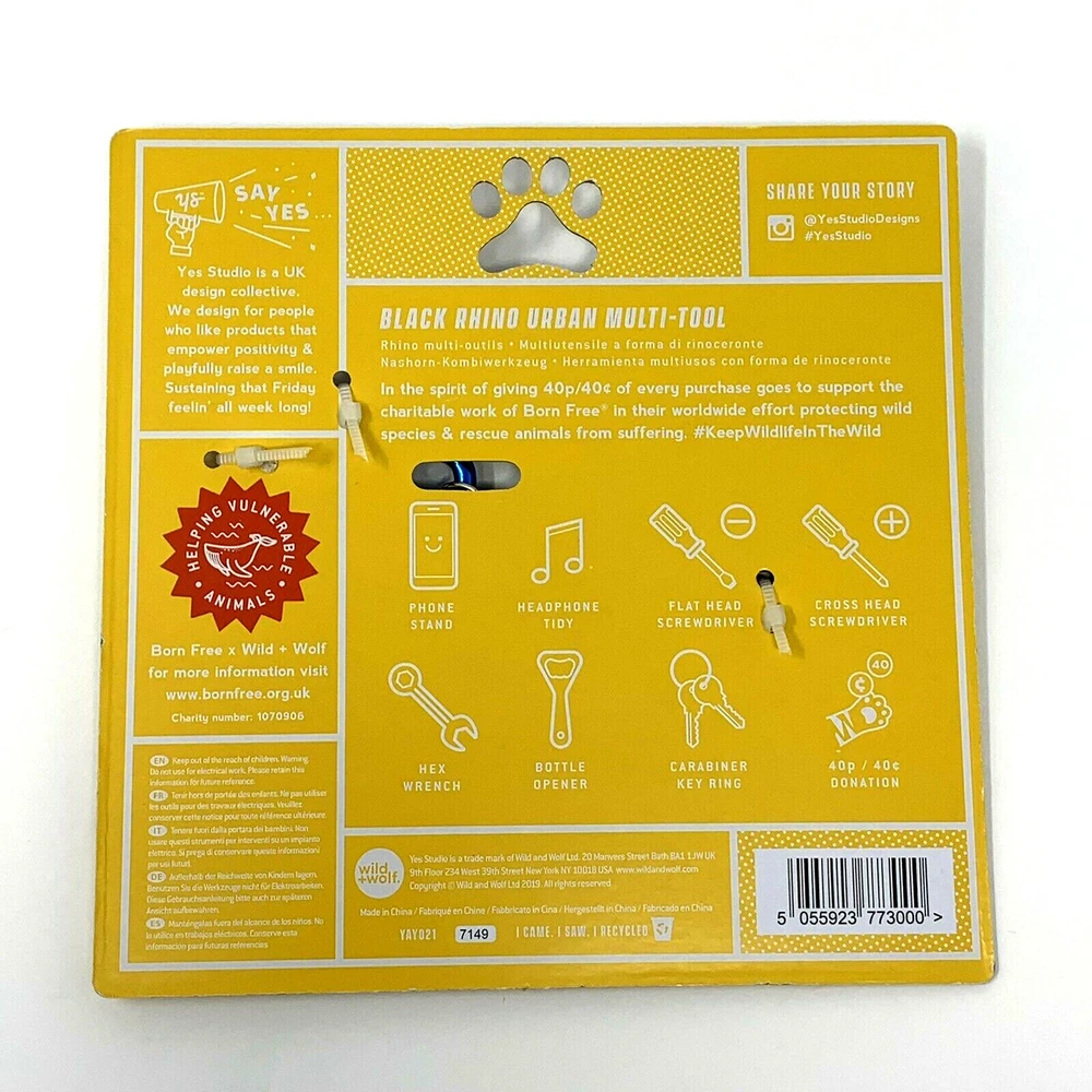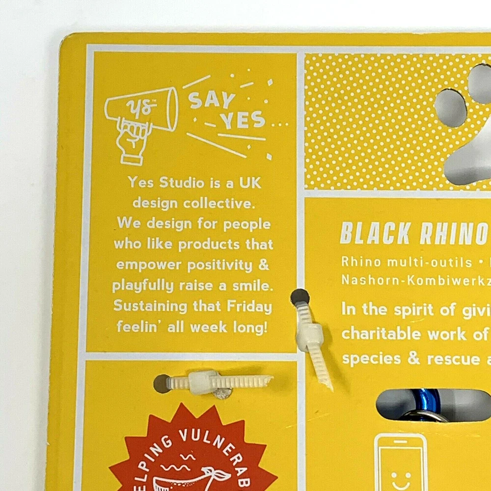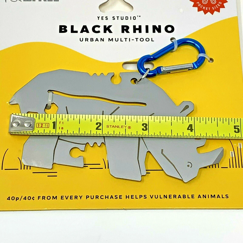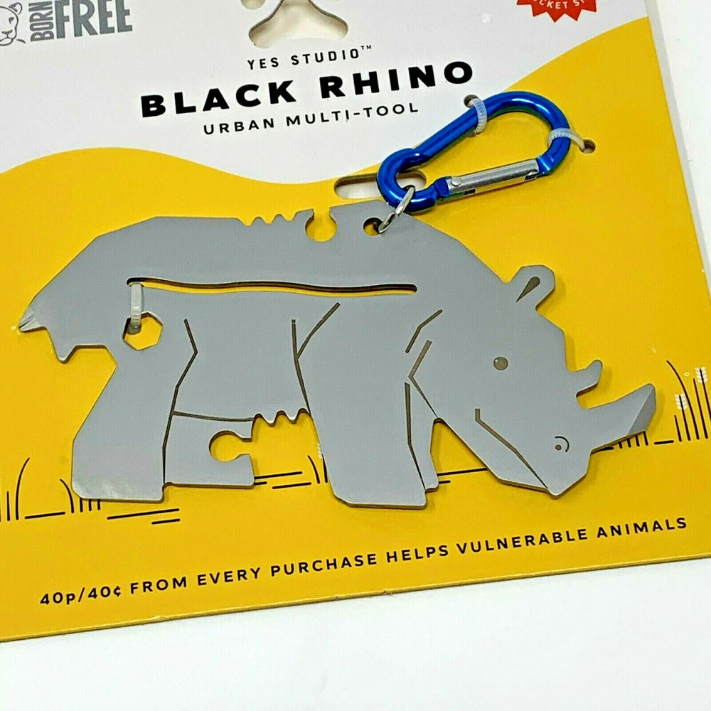 Yes Studio Black Rhino Urban Multi-Tool Animal Shaped Stainless Steel 8 Functions. New, with original packaging. Blue carabiner . tool measures approximately: 4 3/4" wide x 2 5/8" tall Please see all photos. Item is as pictured. Smoke-free location. Item will be carefully packaged for secure shipment. Please contact me with any questions and thank you for looking!