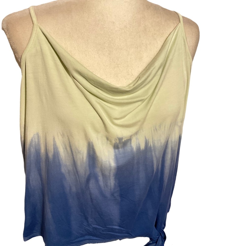 Black Tape, Blue Sky Colored, Ombre Dip Dyed Tank Top. Has Drape Neckline, Side Tie and Adjustable Straps. New With Tickets. Size Extra Large....