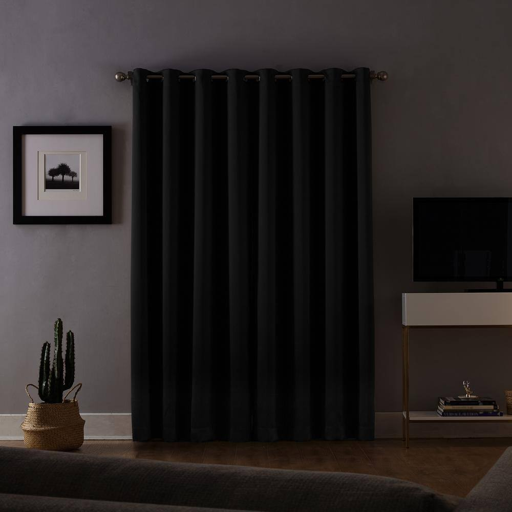 Blackout lining protects from UV rays and provides privacy Polyester construction for added durability Machine washable for easy cleaning Sun Zero Oslo Home Theater Grade Extreme Blackout Grommet Curtain Panel provide the ultimate in light blocking technology to keep out even the harshest of light while bringing an elegant urban sophistication to any room of your home. Sun Zero Extreme Blackout technology is laboratory tested to block out 100% of light, reduce outside noise by up to 35%, and decrease energy lost through your windows by up to 50%. Comfort is optimized with thermal properties that help keep summer heat and winter chill out of your home. Hang in your entertainment room to eliminate screen glare and reduce distracting outside noise, or in your bedroom for enhanced privacy and a sounder, more uninterrupted sleep. Machine wash cold on gentle cycle. Use non-chlorine bleach when needed. Tumble dry on low heat, using a cool iron as needed. Extreme blackout technology blocks out 100% of outside light Energy efficient design reduces energy lost through your windows by up to 50% Thermal properties help keep summer heat and winter chill out of your home Noise reduction by up to 35% helps you get a sounder, more uninterrupted sleep Includes 1 single grommet curtain panel made from machine washable material 100% Polyester Machine wash cold on gentle cycle, use non-chlorine bleach when needed, tumble dry on low heat, using a cool iron as needed