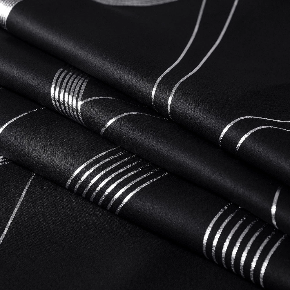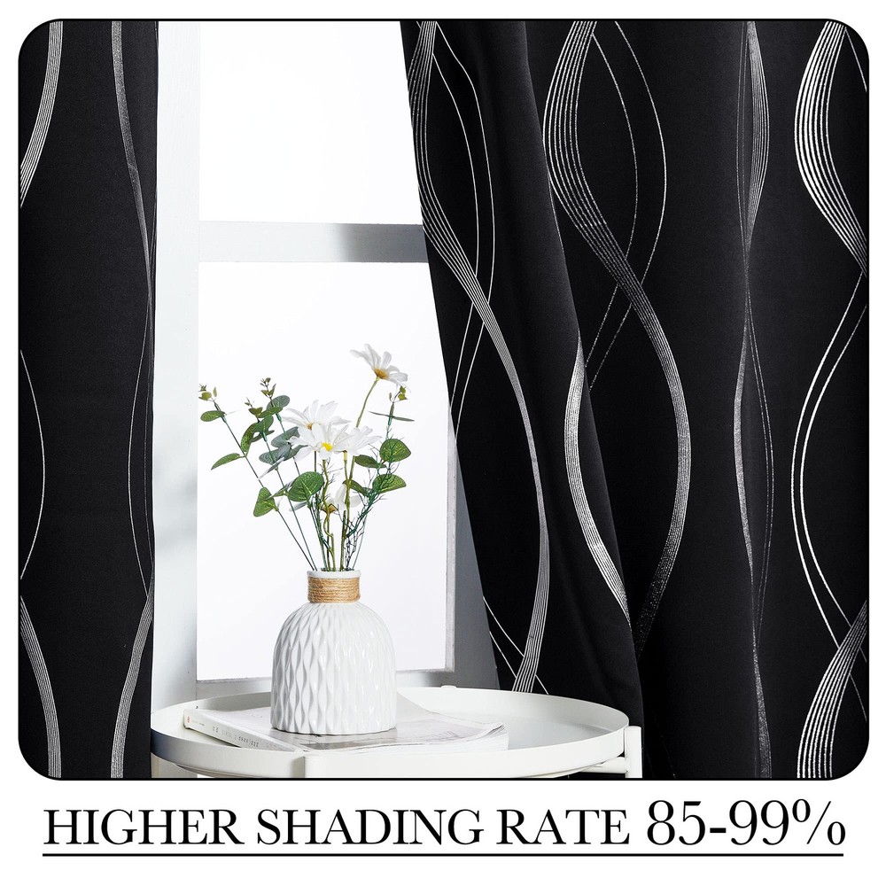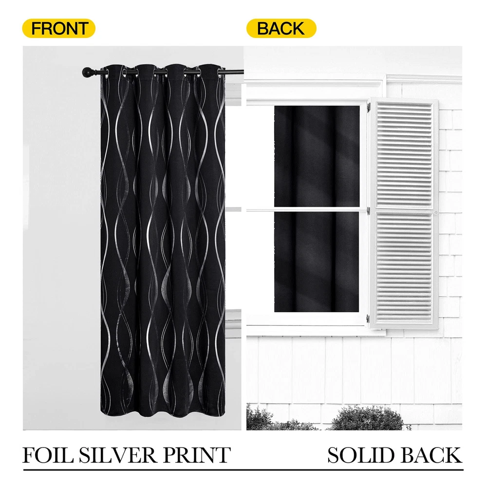 ELEGANT DESIGN: 2 panels per package. Each Blackout Curtain measures 52" wide x 84" long. The design of silver grommet (1.6 inch inner diameter) creates casual elegance for your house, which makes the curtains easy to install and slide. FOIL PRINTED: The classic silver striped wave lines pattern on the background gives the curtains an exclusive elegant look. With digital print technology, beautifully printed with the vibrant design shown. WISE BUDGET: Protect your furniture and floor exposed to the sun, while still balancing the room temperature in summer and winter. Privacy protection. The greatest benefit is to bring you a good night's sleep, making you full of energy every day. WIDE COMPATIBLITY: Don't bother looking for sheer curtains to match, choosing different styles of voile curtains with white color in store. Such curtain sets provide a more permanent harmonious window dressing, making your home lively. EASY CARE: Good quality finishing will withstand years of use. Hand washable and Wash the water temperature below 86℉. Mild detergent no bleaching. Low temperature ironing. Don’t use sharp things scratching curtains.