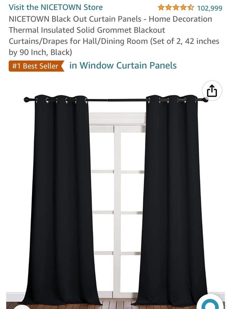 Used for 1month, In excellent condition. NICETOWN Black Out Curtain Panels - Home Decoration Thermal Insulated Solid Grommet Blackout Curtains/Drapes for Hall/Dining Room (Set of 2, 42 inches by 90 Inch, Black)