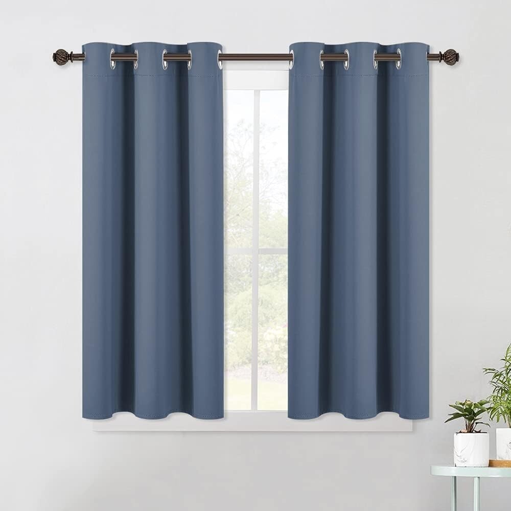 616-221 NICETOWN Thermal Insulated Curtains Blackout Draperies, Window Treatment Solid Grommet Room Darkening Drape Panels for Bedroom (Set of 2 Panels,37"X48" Stone Blue Blue)...