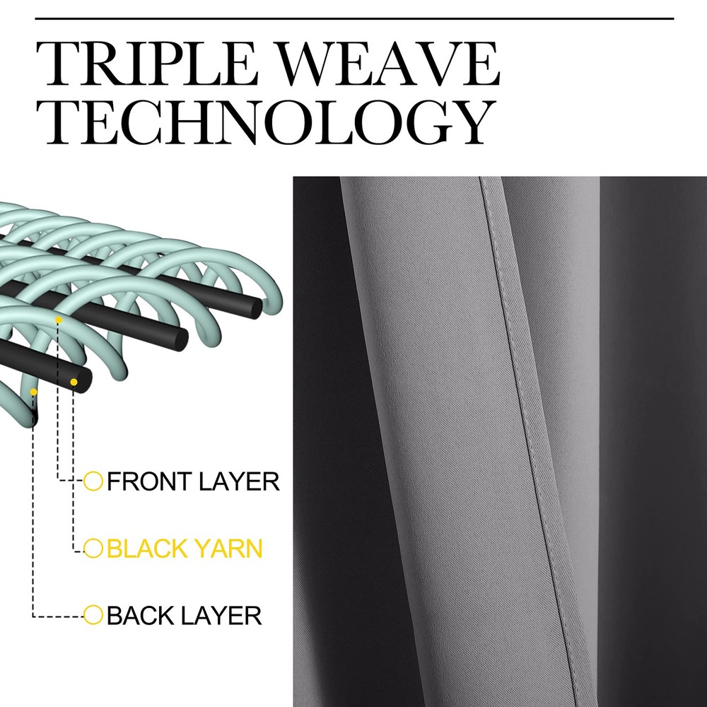 ELEGANT DESIGN: 2 panels per package. Each Blackout Curtain Panel measures 42 inches wide x 63 inches long. The drapery is constructed with rod pocket, fitting the curtain rod of your choice up to 2 inches in diameter, making the curtains easy to install and slide. LENGTH ADJUSTABLE: Don't worry if this blackout curtains are a few shorter than your windows. You can hang this curtain panels with rings and hooks. That could be adjustable for height max 3 inches. Hooks space distance around 4-6 inches. AMAZING MATERIAL: This unique, soft and heavy-duty blackout fabric is woven with three-layer construction. The middle layer of black yarns creates a curtain panel that is excellent for blocking out 85%-99% of light (Dark color works better on blocking light) while providing privacy. GOOD CHOICE: Perfect drapery option for anyone seeking to block daylight, take a nap, or keep sun glare off your TV. Besides, you can choose blackout valance and sheer curtains in the store to match. Such curtain sets provide a more permanent harmonious window dressing. EASY MAINTENANCE: Machine or hand washable. Mild detergent no bleaching. Low-temperature ironing. Measure your pole and window size before you choosing curtains.