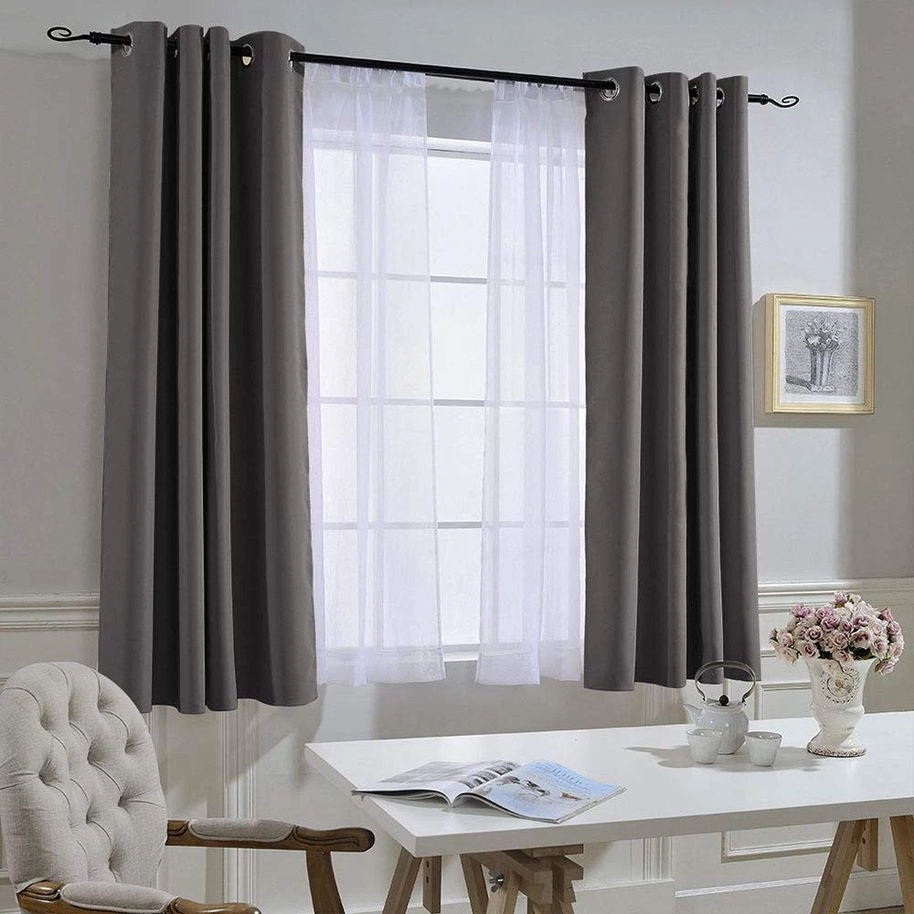 Elegant Design: 2 panels per package. Each Blackout Curtain measures 52" wide x 63" long. The design of silver grommet (1.6-inch inner diameter) creates casual elegance for your house, which makes the curtains easy to install and slide. Amazing Material: Super heavy and soft Blackout Curtain Panels are very upmarket. Besides, 85%-99% light blocking, thermal insulated, soundproof, and energy-efficient. Thread trimmed and -free, both sides are the same color. Good Performance: Protect your furniture and floor exposed to the sun, while still helping you on heating and cooling your home. Privacy protection. The greatest benefit is to bring you a good night's sleep, making you full of energy every day. Wide Compatibility: Don't bother looking for sheer curtains to match, choosing different styles of voile curtains with white color in the . Such curtain sets provide a more permanent harmonious window dressing, making your home lively. Easy Care: Good quality finishing will withstand years of use. Machine washable and Wash the water temperature below 86℉. Mild detergent no bleaching. Low-temperature ironing. Don’t use sharp things scratching curtains.