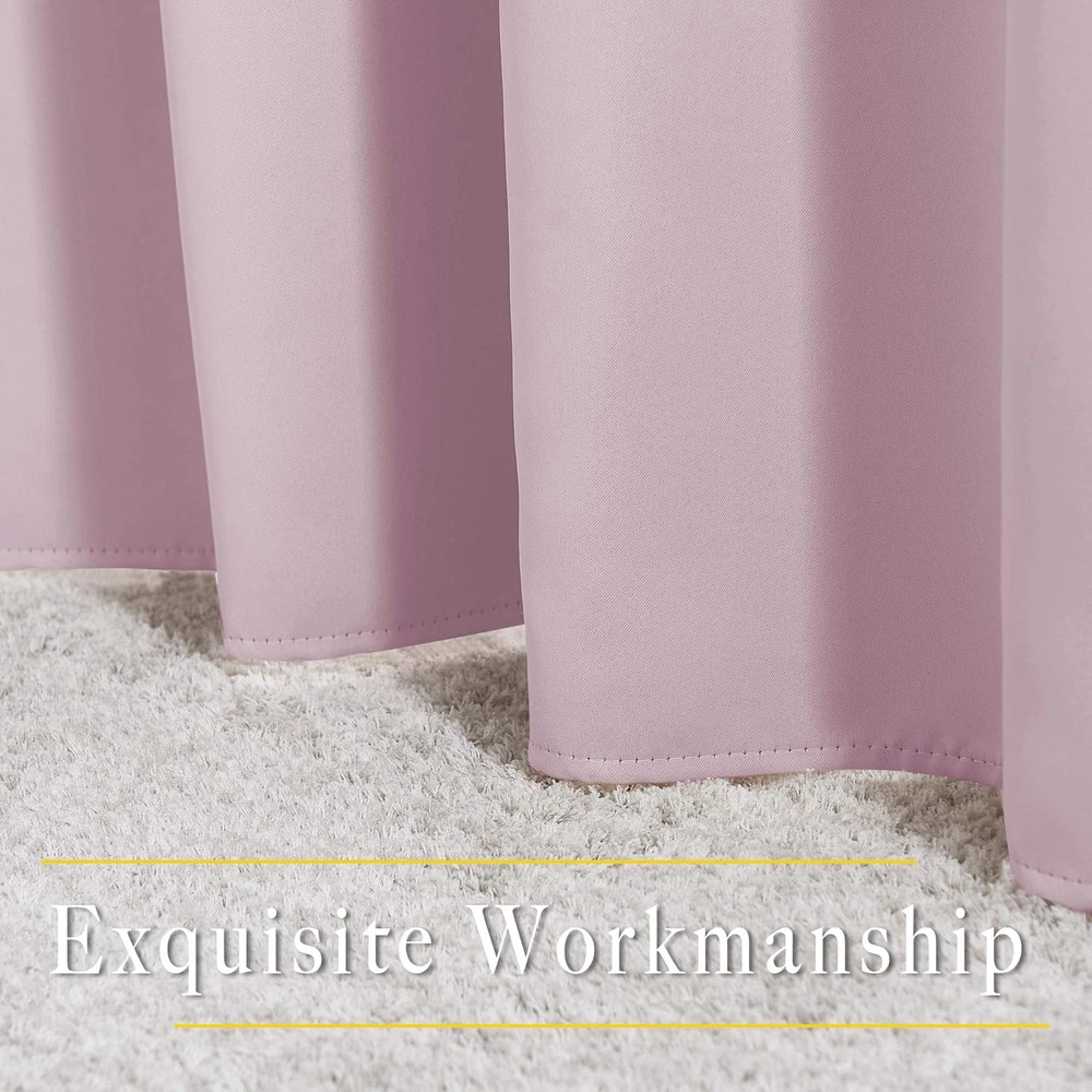 Store New Arrivals Add to Favorite View Feedback Contact Blackout Curtains for Girls Room - Thermal Insulated Solid Grommet Room Darkening Curtains/Panels/Drapes for Bedroom (Lavender Pink=Baby Pink, 1 Pair, 52 by 45-Inch) Description 100% Polyester Elegant Design: 2 panels per package. Each Blackout Curtain measures 52" wide x 45" long. The design of silver grommet (1.6-inch inner diameter) creates casual elegance for your house, which makes the curtains easy to install and slide. Amazing Material: Super heavy and soft Blackout Curtain Panels are very upmarket. Besides, 85%-99% light blocking, thermal insulated, soundproof, and energy-efficient. Thread trimmed and wrinkle-free, both sides are the same color. Good Performance: Protect your furniture and floor exposed to the sun, while still helping you on heating and cooling your home. Privacy protection. The greatest benefit is to bring you a good night's sleep, making you full of energy every day. Wide Compatibility: Don't bother looking for sheer curtains to match, choosing different styles of voile curtains with white color in the NICETOWN store. Such curtain sets provide a more permanent harmonious window dressing, making your home lively. Easy Care: Good quality finishing will withstand years of use. Machine washable and Wash the water temperature below 86℉. Mild detergent no bleaching. Low-temperature ironing. Don’t use sharp things scratching curtains. Product Description HEAVY-DUTY SILVER RING Suitable for most curtain rods, and easily for hanging and sliding. HIGH DENSITY SUTURE The curtain fabric looks more exquisite and worthwhile. SAME FABRIC FRONT AND BACK The same fabric for both sides makes the curtain a simple style. TRIPLE WEAVE TECHNOLOGY Provide you with a perfect shading performance of about 50%-99% Blackout. DO WELL IN THERMAL INSULATED After insulating with the curtain, the temperature drops a lot. 1 SILVER GROMMET 2 HIGH DENSITY SUTURE 3 FRONT AND BACK 4 TRIPLE WEAVE FABRIC 5 THERMAL INSULATED TYPES OF CURTAIN TOP FOR NICETOWN BLACKOUT CURTAIN GROMMET TOP Make curtain orderly, easy to install and slide, so that let the room elegant. Recommended with no greater than a 1.6-inch rod for maximum movement. ROD POCKET Make some small pleats that give a feeling of cozy and classic. Recommended with no greater than a 1.7-inch rod for maximum movement. BACK TAB Give 3 options to hang curtains which is a perfect choice for window decoration. Recommended with no greater than a 1.7-inch rod for maximum movement. TOP TAB Creates casual elegance for your house, which makes the curtains easy to install and slide. Recommended with no greater than a 1.9-inch rod for maximum movement. TWIST TAB Not only creates rich, deep folds for a professional look, but also makes this panel easy to hang, open and close. Recommended with no greater than a 1.9-inch rod for maximum movement. PINCH PLEATED More gathered than other headings and have permanent sewn-in pleats for a more luxurious. Recommended with no greater than a 1.9-inch rod for maximum movement. CLASSIC AND POPULAR COLOR RECOMMENDATIONS COLOR SHADING DISPLAY THE COLOR OF THE ACTUAL ITEM MAY VARY SLIGHTLY IN DIFFERENT ENVIRONMENT The video showcases the product in use. The video guides you through product setup. The video compares multiple products. The video shows the product being unpacked. The video showcases the product in use. The video guides you through product setup. The video compares multiple products. The video shows the product being unpacked. ABOUT US We offer the best prices around on high quality products. Our E-store includes media such as books, movies, music and games while offering electronics, toys, sporting apparel, clothing, tools, general home, garden items and more. SHIPPING We are always working hard to ensure your package arrives as soon as possible. Please understand that some factors like weather, high postal traffic, and the performance of shipping companies are outside of our control. We offer free shipping to the lower 48 states and ship within 2-5 business days of payment, usually sooner. We do not accept P.O. Boxes. Please provide a physical address. For shipping outside of the continental USA, we only use eBay's Global Shipping Program.The item is shipped to KY and then sent to the rest of the world. International customers are responsible for all duties and taxes. Continue to check out in order to calculate costs for shipping the item to your country. Messages regarding eBay's Global Shipping Program MUST be directed at eBay EXCLUSIVELY. RETURNS We offer a 30-Day Return Policy on items which you are not completely satisfied with. You have the option for a full-refund or an exchange of the item. No returns are available on items shipped outside of the USA. PAYMENT We accept PayPal. CONTACT US This page content is yet to come Please ad us to your favorite seller and visit again later Thank You CUSTOMER SATISFACTION We try our very best to make sure every customer is completely satisfied. If there's a problem, message us! We're happy to help.