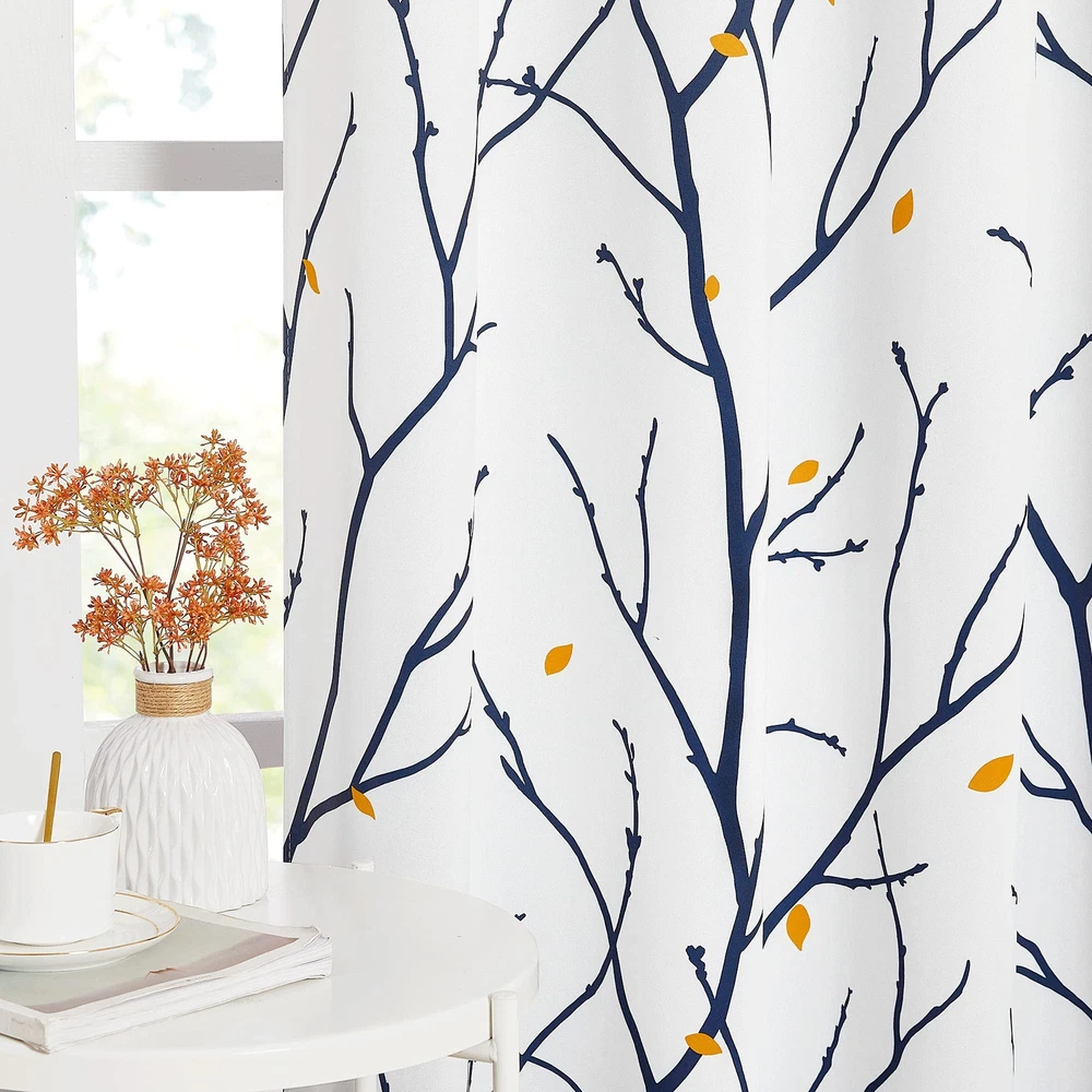 Blackout Curtains ELEGANT DESIGN: 2 panels per package. Each Blackout Curtain measures 52" wide x 95" long. The design of silver grommet (1.6 inch inner diameter) creates casual elegance for your house, which makes the curtains easy to install and slide. FOIL PRINTED: The classic silver T-shaped pattern on the background gives the curtains an exclusive elegant look. With digital print technology, beautifully printed with the vibrant design shown. WISE BUDGET: Protect your furniture and floor exposed to the sun, while still balancing the room temperature in summer and winter. Privacy protection. The greatest benefit is to bring you a good night's sleep, making you full of energy every day. WIDE COMPATIBLITY: Don't bother looking for sheer curtains to match, choosing different styles of voile curtains with white color in . Such curtain sets provide a more permanent harmonious window dressing, making your home lively. EASY CARE: Good quality finishing will withstand years of use. Hand washable and Wash the water temperature below 86℉. Mild detergent no bleaching. Low temperature ironing. Don’t use sharp things scratching curtains.