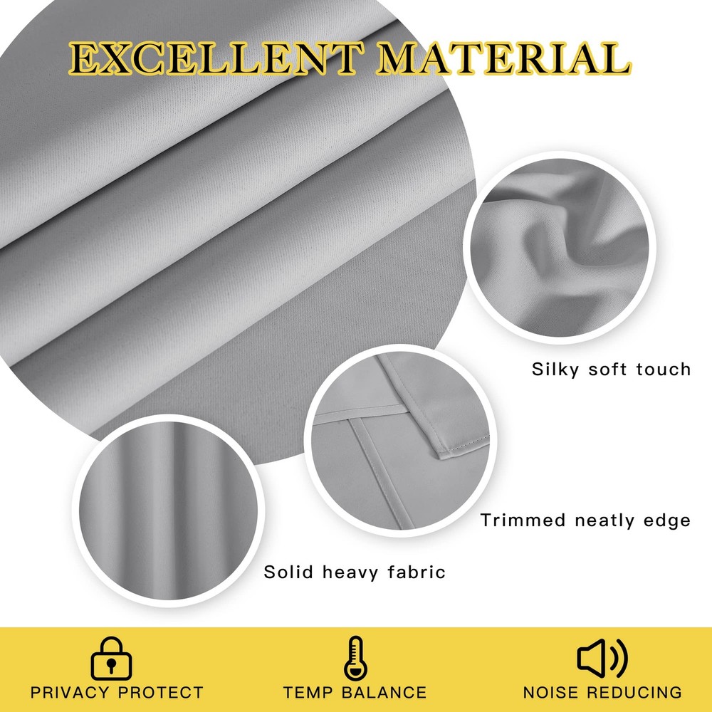 BLACKOUT CURTAINS are so much more than just bits and pieces of fabric that are sewn together to prevent sunlight from entering your home, they go beyond that mundane function and provide additional benefits that do not meet the eye instantly. Light Blocking Energy Savers. Having the heavy, multi-layered microfiber blackout window curtains or drapes can make a world of a difference in reducing the amount of light that comes in from outside, which has green-conscious consumers excited about investing them as energy-efficient window treatments. A home insulated and remains warmer in wintertime relieves the strain on home heating and reduces 25 percent energy budget at most. Sleep Soother n Noise Buffer. There is nothing better than a good nights sleep to enable you to wake up refreshed and feeling perfectly alright. They ensure that even if you are a light sleeper you will not be disturbed by the sound on the street, the neighborhood light and so forth. What you will be left with is the feeling of waking up feeling rejuvenated and refreshed. Absolute Privacy n Relax. Blackout curtains will stop the outside world from creeping into your private moments. This curtains would be perfect for any home theater and supply you with enjoyment of watching TV in real darkness. If you are looking for great and cost-effective ways of re-inventing the look of your home, opt for ready made curtains. They are crafted for the topmost and luxury, coming with the strong grommet ring top for easy installation and smooth sliding over a rod. Each curtain panel is carefully ironed and ready to serve as your window dressing. Please Note :Due to different computer/screen display, the color of the actual item may vary slightly from the above images; Allow slight deviation due to manual measurement. ELEGANT DESIGN: 1-panel BLACKOUT CURTAIN per package. Each Curtain Panel measures 52" wide x 54" long. The drapery is constructed with gorgeous matte silver grommets, fitting the curtain rod of your choice up to 1.6 inches in diameter, making the curtains easy to install and slide. AMAZING MATERIAL: This unique, soft, and heavy-duty blackout fabric is woven with three-layer construction. The middle layer of black yarns creates a curtain panel that is excellent for blocking out 85%-99% of light (Dark color works better on blocking light) while providing privacy. MULTIFUNCTION: These Blackout Window Curtain Blind will prevent harmful light from reaching your floors and furniture, efficiently prevents cold or heat transfer from outside, will increase the energy efficiency of your home, and allow you to create darkness at any time of day. GOOD CHOICE: Perfect drapery option for anyone seeking to block daylight, take a nap, or keep sun glare off your TV. Besides, you can choose blackout valance and sheer curtains in the store to match. Such curtain sets provide a more permanent harmonious window dressing. EASY CARE: Good-quality finishing will withstand years of use. Machine washable and Wash the water temperature below 86F. Mild detergent no bleaching. Low-temperature ironing. Don’t use sharp things scratching curtains.