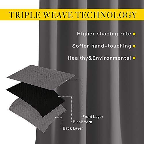 Elegant Design: 2 panels per package. Each Blackout Curtain measures 52" wide x 45" long. The design of silver grommet (1.6-inch inner diameter) creates casual elegance for your house, which makes the curtains easy to install and slide. Amazing Material: Super heavy and soft Blackout Curtain Panels are very upmarket. Besides, 85%-99% light blocking, thermal insulated, soundproof, and energy-efficient. Thread trimmed and -free, both sides are the same color. Good Performance: Protect your furniture and floor exposed to the sun, while still helping you on heating and cooling your home. Privacy protection. The greatest benefit is to bring you a good night's sleep, making you full of energy every day. Wide Compatibility: Don't bother looking for sheer curtains to match, choosing different styles of voile curtains with white color in the . Such curtain sets provide a more permanent harmonious window dressing, making your home lively. Easy Care: Good quality finishing will withstand years of use. Machine washable and Wash the water temperature below 86℉. Mild detergent no bleaching. Low-temperature ironing. Don’t use sharp things scratching curtains.