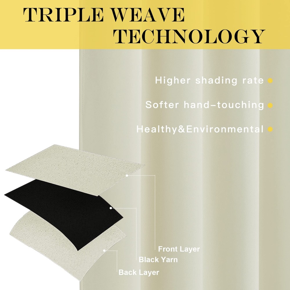 BLACKOUT CURTAINS are so much more than just bits and pieces of fabric that are sewn together to prevent sunlight from entering your home, they go beyond that mundane function and provide additional benefits that do not meet the eye instantly. Light Blocking Energy Savers. Having the heavy, multi-layered microfiber blackout window curtains or drapes can make a world of a difference in reducing the amount of light that comes in from outside, which has green-conscious consumers excited about investing them as energy-efficient window treatments. A home insulated and remains warmer in wintertime relieves the strain on home heating and reduces 25 percent energy budget at most. Sleep Soother n Noise Buffer. There is nothing better than a good nights sleep to enable you to wake up refreshed and feeling perfectly alright. They ensure that even if you are a light sleeper you will not be disturbed by the sound on the street, the neighborhood light and so forth. What you will be left with is the feeling of waking up feeling rejuvenated and refreshed. Absolute Privacy n Relax. Blackout curtains will stop the outside world from creeping into your private moments. This curtains would be perfect for any home theater and supply you with enjoyment of watching TV in real darkness. If you are looking for great and cost-effective ways of re-inventing the look of your home, opt for ready made curtains. They are crafted for the topmost and luxury, coming with the strong grommet ring top for easy installation and smooth sliding over a rod. Each curtain panel is carefully ironed and ready to serve as your window dressing. Please Note :Due to different computer/screen display, the color of the actual item may vary slightly from the above images; Allow slight deviation due to manual measurement. AMAZING FABRIC: The blackout curtain's fabric is super soft and heavy innovative triple-weave polyester fabric. The same material back as of front makes it appear more elegant. The 14 sliver grommets top (inner diameter is 1.6-inch) adds a modern touch and easy hanging. MULTIPLE FUNCTIONAL: These extra wide curtains are wide enough to cover the sliding door perfectly. Besides, the curtain panel helps your patio door to block out most of the light, high performance on thermal insulated, noise-reducing, and privacy-protecting. ENERGY SMART: Triple weave blackout fabric balances room temperature by insulating against summer heat and winter chill, reducing air conditioning costs. Protect your furniture, floors, and artwork from the ravages of the sun, the Patio Door Drapes will pay for themselves off over time. WISE COMPATIBLE: Thread trimmed and wrinkle-free, all sets for you to put them up right away. Suitable perfectly for sliding doors, patio doors, and any large window. These wide curtains can be hung separately, or combine with sheer curtains. EASY CARE: Good-quality finishing will withstand years of use. Machine washable and Wash the water temperature below 86F. Mild detergent no bleaching. Low-temperature ironing. Don’t use sharp things scratching curtains.