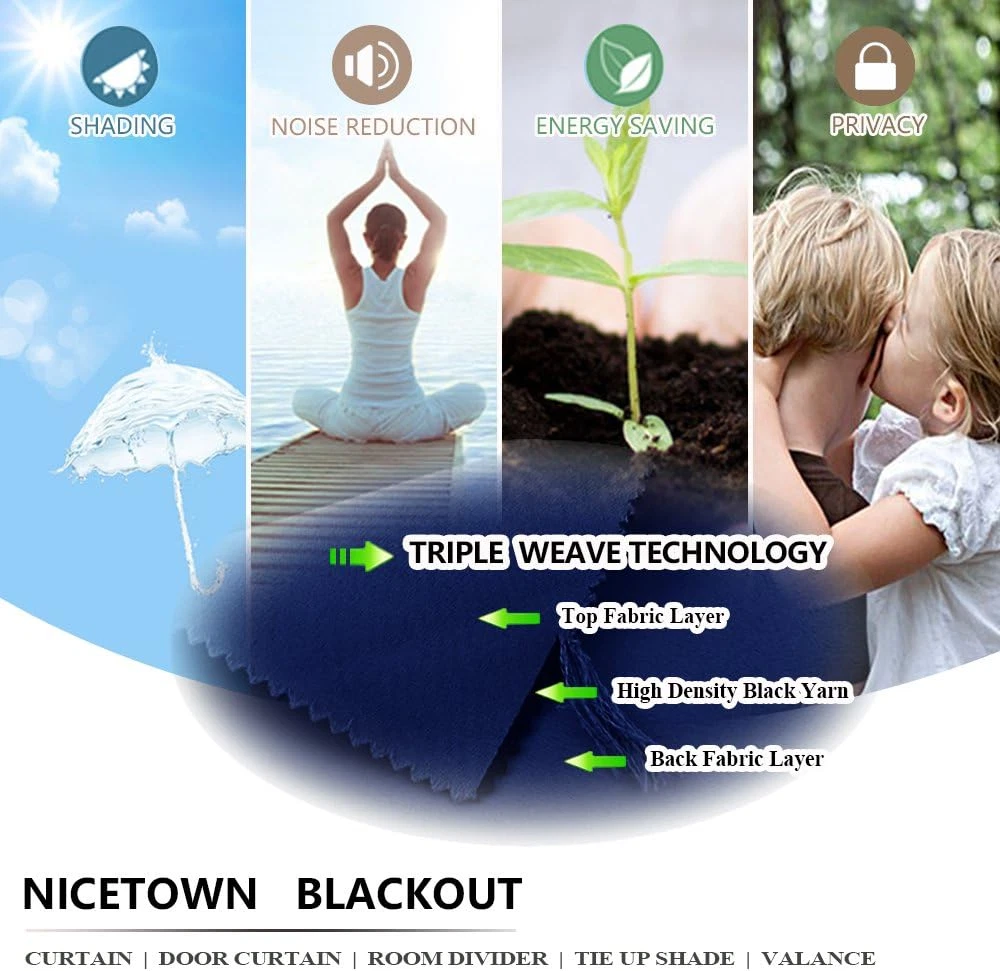 Blackout Window Curtains and Drapes - Thermal Insulated Solid Grommet Top Blackout Panels/Draperies for Kid's Room (Navy Blue, 1 Pair, 52 x 63 Inch) 100% Polyester Elegant Design: 2 panels per package. Each Blackout Curtain measures 52" wide x 63" long. The design of silver grommet (1.6-inch inner diameter) creates casual elegance for your house, which makes the curtains easy to install and slide. Amazing Material: Super heavy and soft Blackout Curtain Panels are very upmarket. Besides, 85%-99% light blocking, thermal insulated, soundproof, and energy-efficient. Thread trimmed and wrinkle-free, both sides are the same color. Good Performance: Protect your furniture and floor exposed to the sun, while still helping you on heating and cooling your home. Privacy protection. The greatest benefit is to bring you a good night's sleep, making you full of energy every day. Wide Compatibility: Don't bother looking for sheer curtains to match, choosing different styles of voile curtains with white color in the NICETOWN store. Such curtain sets provide a more permanent harmonious window dressing, making your home lively. Easy Care: Good quality finishing will withstand years of use. Machine washable and Wash the water temperature below 86℉. Mild detergent no bleaching. Low-temperature ironing. Don’t use sharp things scratching curtains. Product Description HEAVY-DUTY SILVER RING Suitable for most curtain rods, and easily for hanging and sliding. HIGH DENSITY SUTURE The curtain fabric looks more exquisite and worthwhile. SAME FABRIC FRONT AND BACK The same fabric for both sides makes the curtain a simple style. TRIPLE WEAVE TECHNOLOGY Provide you with a perfect shading performance of about 50%-99% Blackout. DO WELL IN THERMAL INSULATED After insulating with the curtain, the temperature drops a lot. 1 SILVER GROMMET 2 HIGH DENSITY SUTURE 3 FRONT AND BACK 4 TRIPLE WEAVE FABRIC 5 THERMAL INSULATED TYPES OF CURTAIN TOP FOR NICETOWN BLACKOUT CURTAIN GROMMET TOP Make curtain orderly, easy to install and slide, so that let the room elegant. Recommended with no greater than a 1.6-inch rod for maximum movement. ROD POCKET Make some small pleats that give a feeling of cozy and classic. Recommended with no greater than a 1.7-inch rod for maximum movement. BACK TAB Give 3 options to hang curtains which is a perfect choice for window decoration. Recommended with no greater than a 1.7-inch rod for maximum movement. TOP TAB Creates casual elegance for your house, which makes the curtains easy to install and slide. Recommended with no greater than a 1.9-inch rod for maximum movement. TWIST TAB Not only creates rich, deep folds for a professional look, but also makes this panel easy to hang, open and close. Recommended with no greater than a 1.9-inch rod for maximum movement. PINCH PLEATED More gathered than other headings and have permanent sewn-in pleats for a more luxurious. Recommended with no greater than a 1.9-inch rod for maximum movement. CLASSIC AND POPULAR COLOR RECOMMENDATIONS COLOR SHADING DISPLAY THE COLOR OF THE ACTUAL ITEM MAY VARY SLIGHTLY IN DIFFERENT ENVIRONMENT The video showcases the product in use. The video guides you through product setup. The video compares multiple products. The video shows the product being unpacked. The video showcases the product in use. The video guides you through product setup. The video compares multiple products. The video shows the product being unpacked. Item model number VCNTGMBLKSLD2-5263C2 Style Modern Number of Items 2 Assembly required No Pattern Solid Country of Origin China Package Weight 1.14 Kilograms Theme Blackout Curtains Opacity Blackout Inches Room Type kids room, Bedroom, Living Room, Nursery, Dining Room Product Dimensions 63"L x 52"W Batteries required No Material Fabric Top Style Grommet Model Name NTGMBLKSLD2-52GM2ALL Number of shelves 2 Seasons Summer Is Discontinued By Manufacturer No Specific Uses For Product [INFERRED] Room darkening, thermal insulation, noise reduction, privacy enhancement Included Components Curtain Panels Closure Type Slide Curtain Form Drapes Perfume Unscented Item Weight 2.51 pounds Size 52"W x 63"L (Pack of 2) Compatible with Rod Size 1.60 Special Feature Window Treatments, Blackout, Bagged Hanging Method Grommet Color Navy Blue Recommended Uses For Product Bedrooms, home theaters, spaces requiring temperature or noise control, and areas desiring privacy protection or blackout capabilities. Fabric Type 100% Polyester Product Care Instructions Mild Detergent Number of pieces 2 Brand Unbranded Shipping Fast shipping USA Shipping Fast shipping is very important for us. Our standard US shipping service is FREE. Your order will be shipped within 2-4 business days upon full payment received. Your order will be delivered within 2-4 business days after the handling time. We are not responsible for undeliverable addresses. Returns and payment We offer a 30 days return policy from checkout winning date. We offer the best prices around on high quality products. Our store includes media such as books, movies, music and games while offering electronics, toys, sporting apparel, clothing, tools, general home, garden items and more. FeedBack Your feedback very important to us, after you get your package and you are satisfied with our service please leave us positive feedback If you have any problem with your order / any questions please before leave any type of feedback For any questions, using eBay contact system Please visit our eBay store to check out other items for sale! Thank you for shopping at our store.