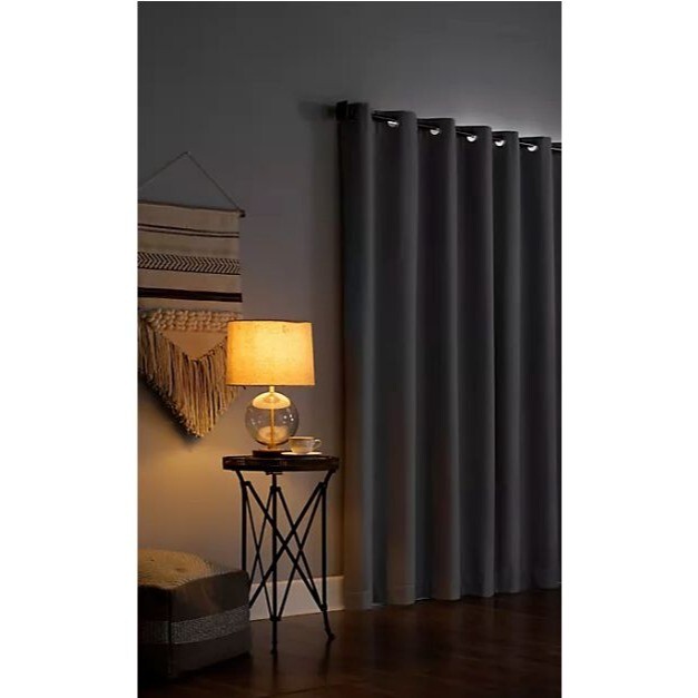 Draft Shield Fleece Blackout Curtain 84"L x 50"W Woven dobby design adds enviable texture Draft Shield fleece insulation provides optimal temperature regulation Noise reduction creates a calmer environment Total Blackout enhances sleep quality, wellness, and comfort Machine wash and dry Grommet top treatment Panel sold individually and measures 50" W Fits a rod up to 1.5" in diameterItem comes from a smoke free/ pet free home unless otherwise stated above.