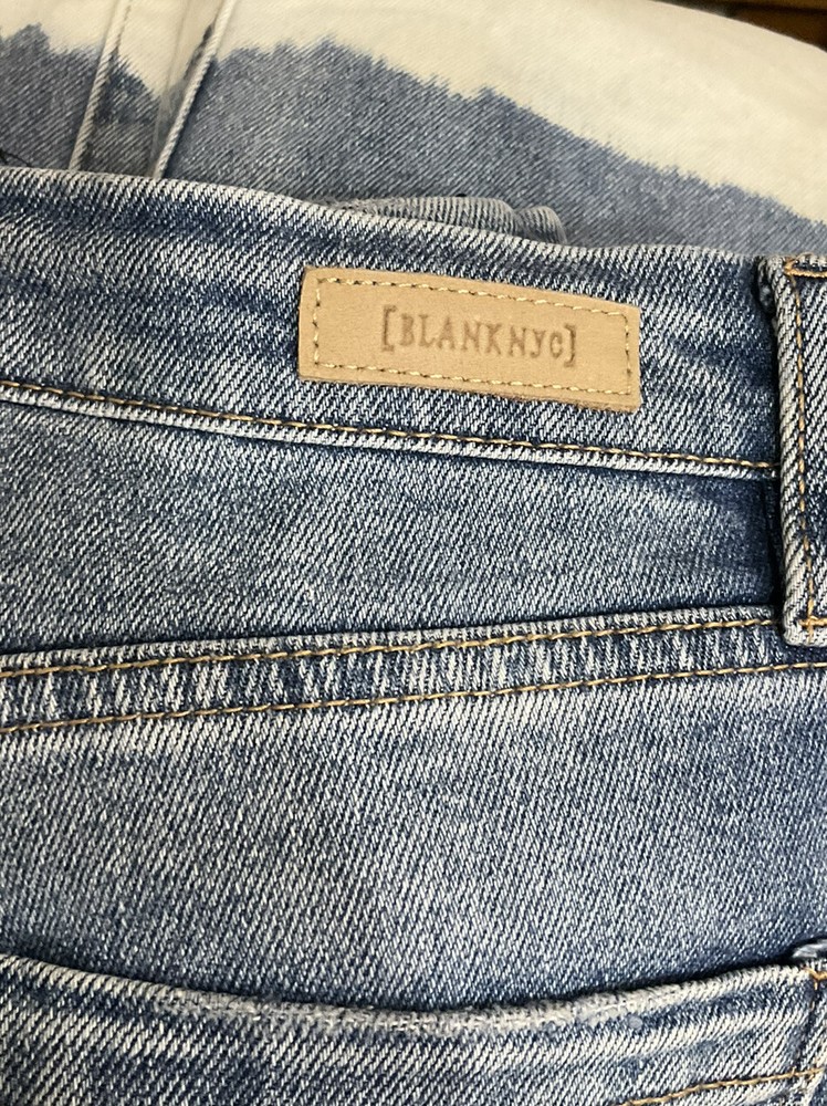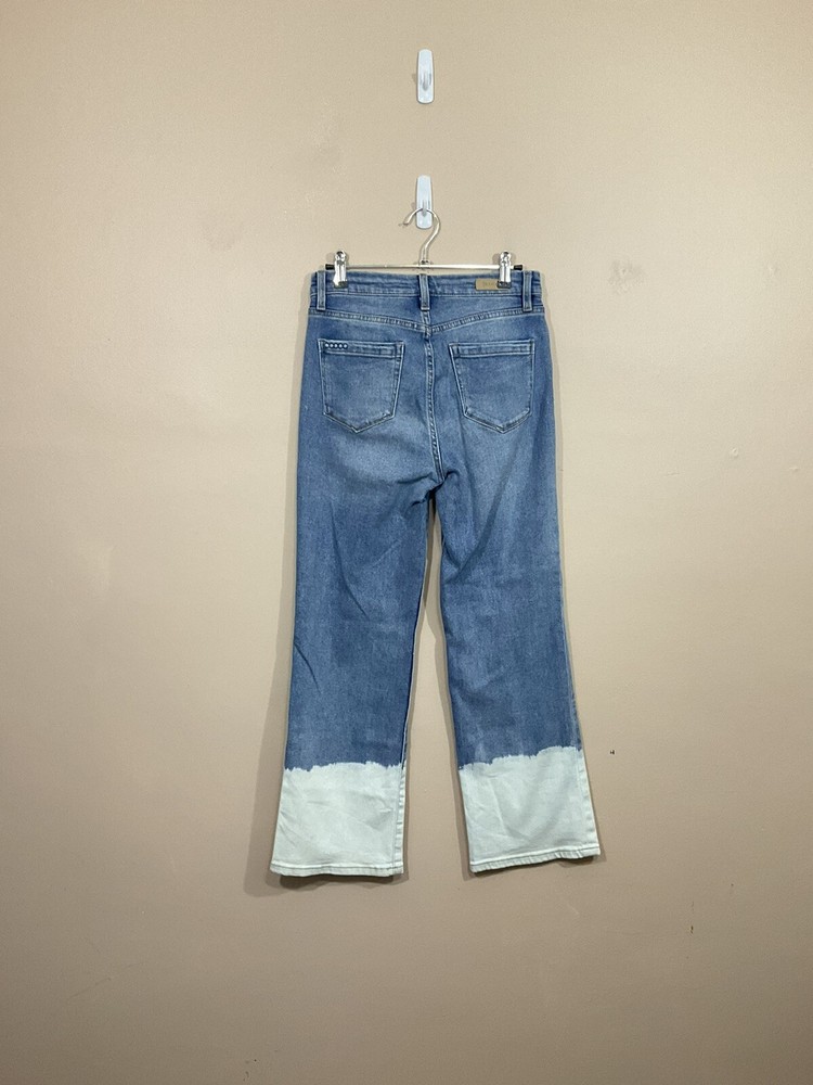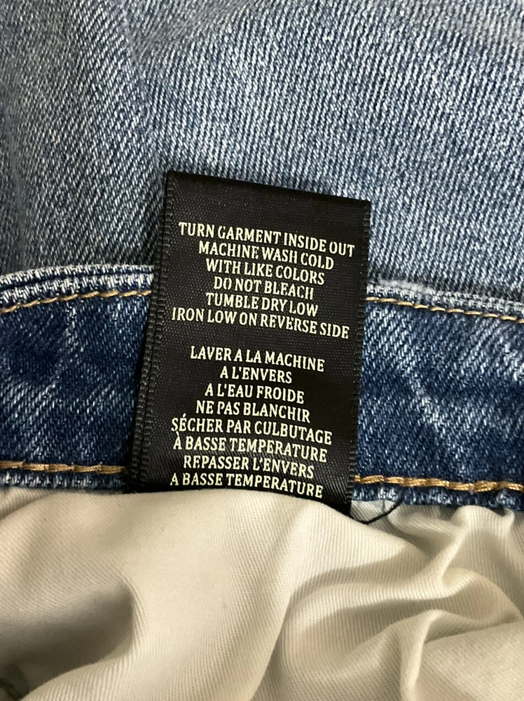 Jeans have 5 button fly closure and are high waisted. Waist measures 14 inches lying flat, inseam is 26.5 long, and rise is 11.5 inches.
