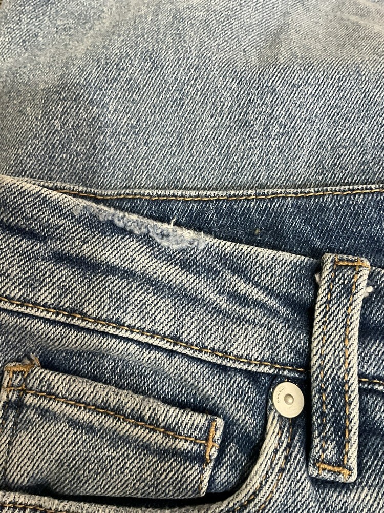 Jeans have 5 button fly closure and are high waisted. Waist measures 14 inches lying flat, inseam is 26.5 long, and rise is 11.5 inches....