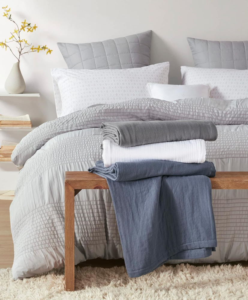 Menu Other Items Feedbacks About Us Contact Us Add To Favorites Blanket Gauze 100% Cotton Soft & Breathable 3 Layers Lightweight Summer Cover, All Seasons, Cozy & Lofty for Bed, Couch and Office, Blue, King(108"X90") 100% Cotton The Madison Park 100% Cotton Gauze Blanket offers an incredibly soft and cozy texture, the perfect addition to your home décor This lightweight blanket features 3 layers of ultra-soft cotton fabric to create a lush feel that’s breathable to keep hot sleepers cool and a refreshing update that’s perfect for layering on your bed Cozy, breathable blanket and OEKO-TEX certified, meaning it does not contain any harmful substances or chemicals to ensure quality comfort and wellness Set include: 1 Blanket: 108"W x 90"L Care Instructions: Machine wash The Clean Spaces 100% Cotton Gauze Blanket offers an incredibly cozy and soft addition to your home decor. This lightweight blanket features 3 layers of ultra-soft cotton fabric to create a lush feel that's breathable to keep hot sleepers cool. With its casual farmhouse charm, this cotton gauze blanket provides a comfortable and refreshing update that’s perfect for layering on your bed. Item Specification Item model number LCN51N-0028 Style Casual Weave Type Plain Number of Items 1 Pattern Solid Country of Origin Pakistan Blanket Form Throw Blanket Theme Plain Unit Count 1.0 Count Batteries required No Product Dimensions 90"L x 108"W Material Cotton Age Range (Description) Adult Seasons All Model Name Gauze Blanket 100% Cotton Blanket Soft & Breathable 3 Layers Lightweight Gauze Fabric, Fabric Type 100% Cotton Item Weight 3.3 pounds Special Feature Reversible, Lightweight, Breathable Fabric Warmth Description Lightweight Sport Camping Color Blue Recommended Uses For Product Napping Included Components 1 Blanket Product Care Instructions Machine Wash Size King(108"x90") Dimensions Shipping Returns Additional Info Product Dimensions: 108.0 "w x 90.0 "w. Weight: 3.3 lb Fast shipping is very important for us. Our standard shipping service is FREE. Your order will be shipped within 1-3 business days upon full payment received. Most items are delivered within 3-5 business days, however, please allow 3-10 business days. We are shipping only to USA. We only ship to the confirmed Paypal address. We reserve the right to cancel any order for any reason at any time. We are not responsible for undeliverable addresses. We offer a 30 day return policy from checkout winning date. Your satisfaction is guaranteed! If for any reason you are unhappy with your item, just return it within 30 days for a full refund, minus shipping cost. Please contact us prior to initiating a return so that we can issue you a refund authorization. Items defective upon receipt must be packaged in their retail packaging as if new and returned with a detailed description of the problem. Return shipping fees are not refundable. We reserve the right to decline any returns if the above guidelines are not followed. All of our items, unless otherwise stated, will only run on 120 volts. Please check to make sure your country complies with these specifications. If you have a problem or question regarding your transaction please contact us before leaving any type of feedback. We will work with you to resolve any problem you may have.