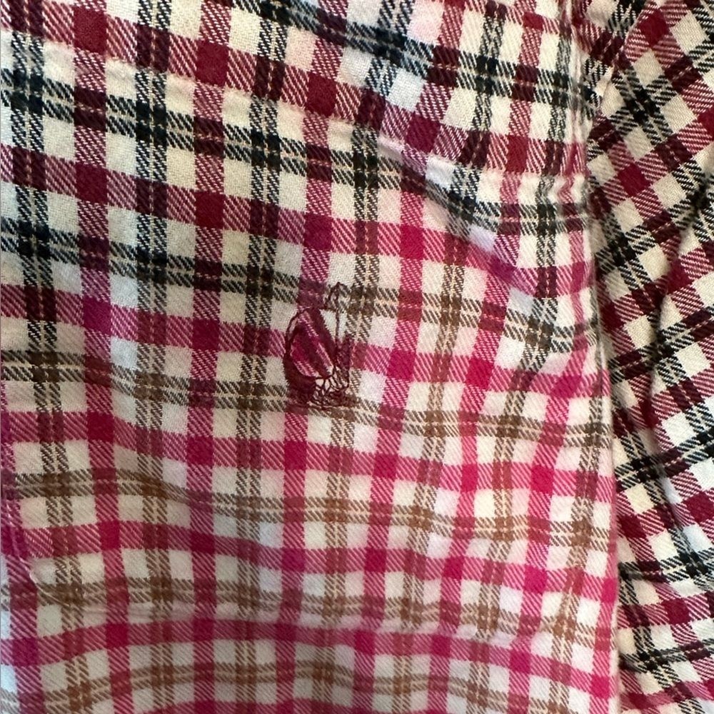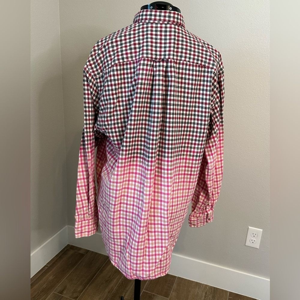 Distressed flannel shirt dipped in bleach to achieve an ombré faded look. This is a Men’s Large. Grunge, Distressed, Preppy...