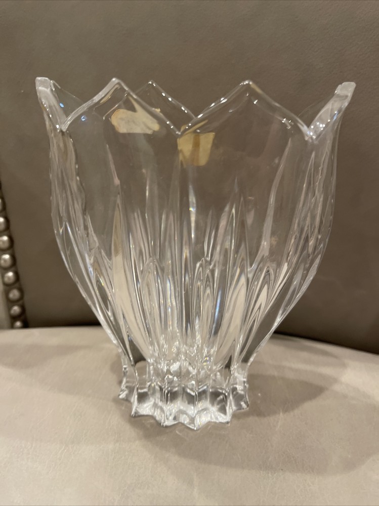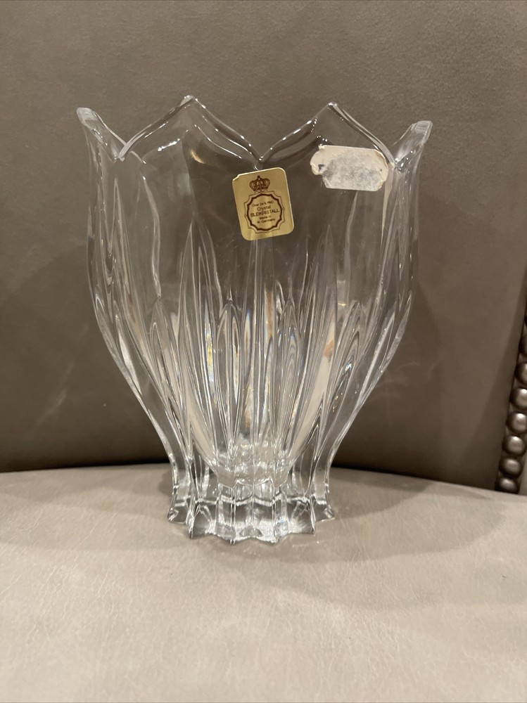 Bleikristall Tulip Shaped Crystal Vase Over 24% Lead Crystal 6” x 5” sticker.. bin 3...