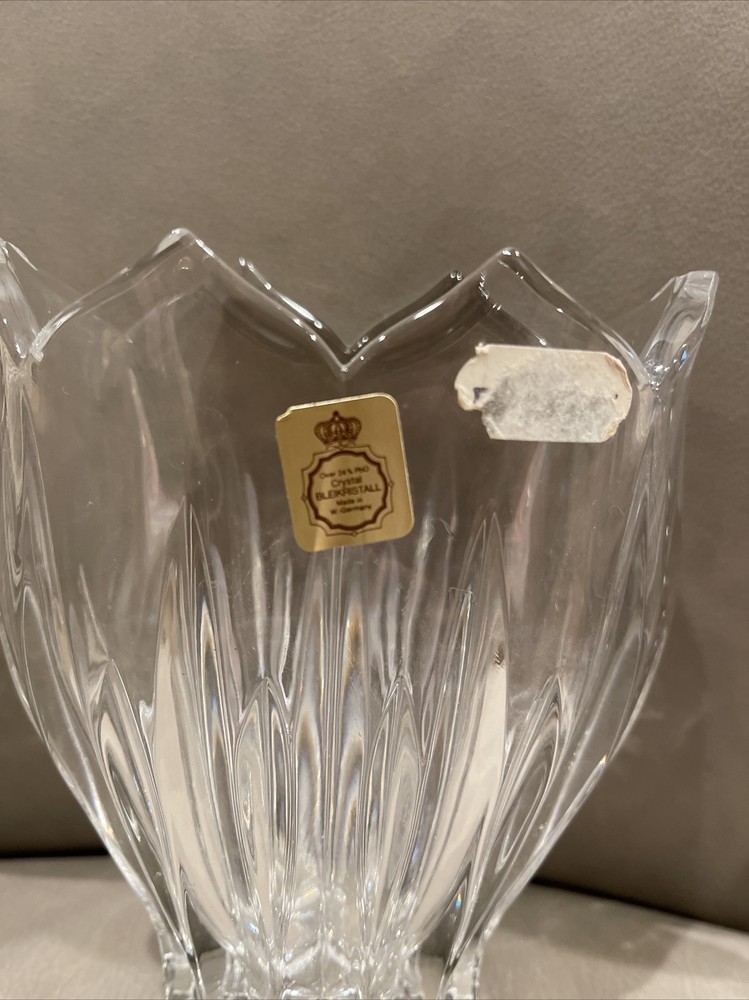 Bleikristall Tulip Shaped Crystal Vase Over 24% Lead Crystal 6” x 5” sticker.. bin 3