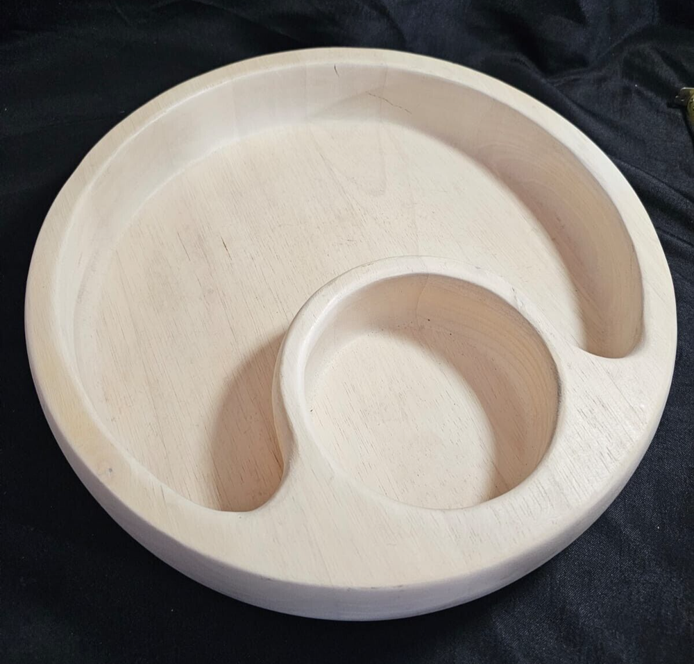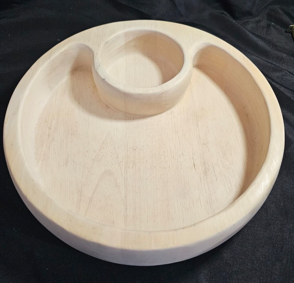 Blonde Wooden Segmented Divided Chip and Dip Bowl Dish Large Round Serving Very good pre-owned condition Please see photos Thank you for viewing my treasures!