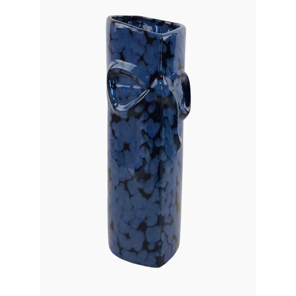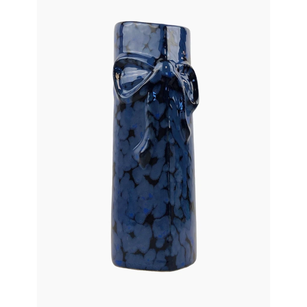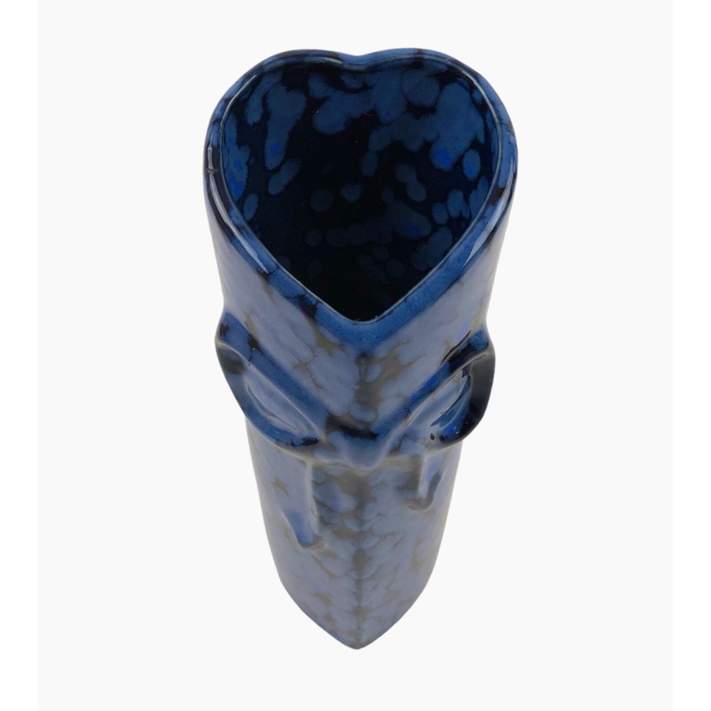Blue Black Heart Shaped Mini Bud Vase Bow Pottery Glazed Features: • Heart Shaped • Speckled Paint Measurements: Length 2 in / 5 cm Width 2.75 in / 7 cm Height 10 in / 25 cm Condition: Pre-Owned Good There are no chips or cracks Orders placed with be shipped either the same or the next business day