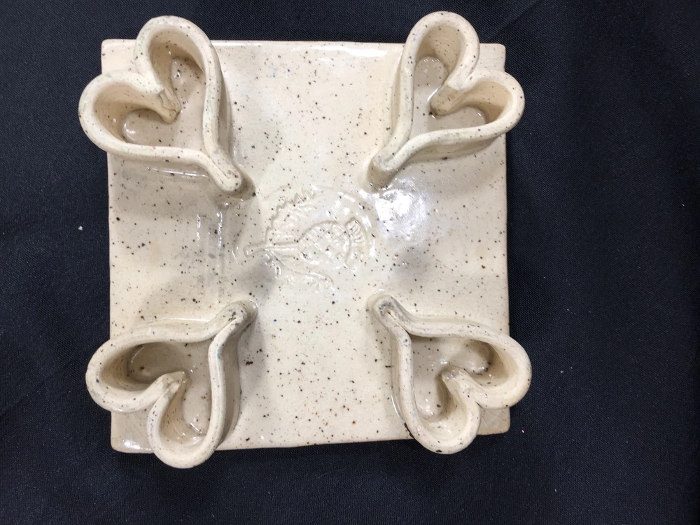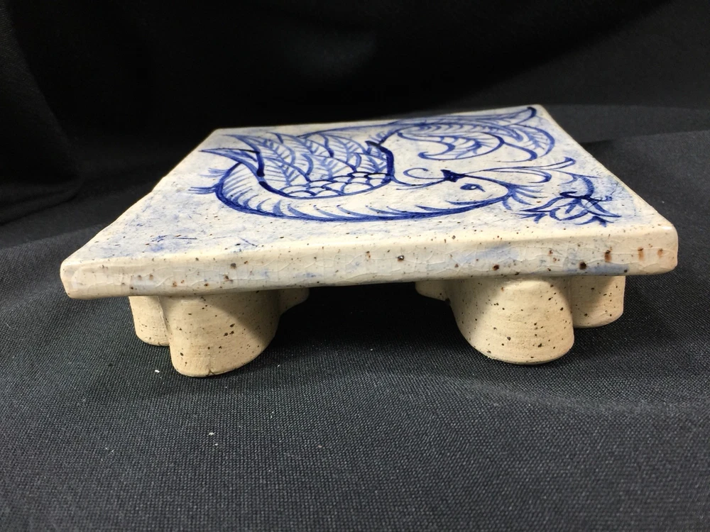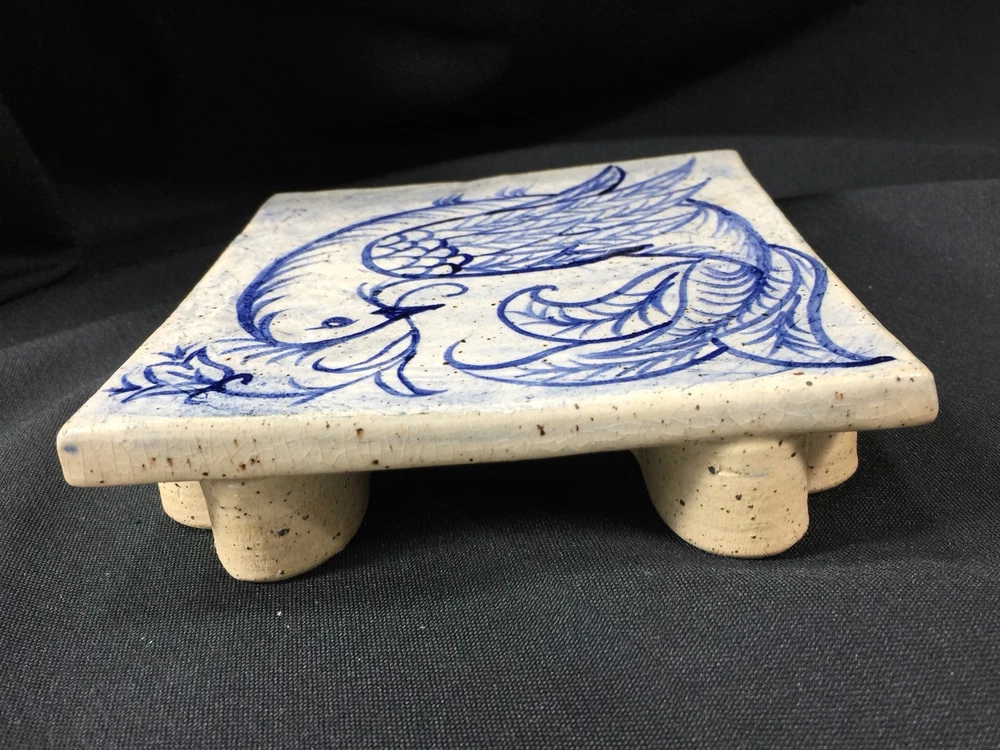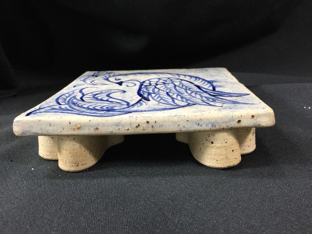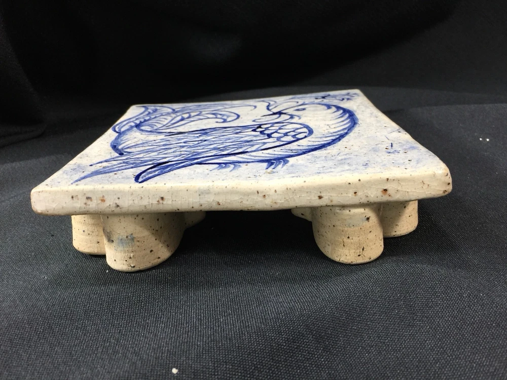 Beautiful handmade tile trivet with heart shaped feet. Measures about 1 1/2 inches tall and 6 x 6 inches square. Excellent condition. No chips or cracks. Tiny crazing in glaze gives it a vintage patina. Stamped Thistledown Farm Pottery, Taneytown Maryland Unless noted as new, all of my items are previously owned and loved. Please expect minor defects, wear and tear as it is pre owned! I try to describe your treasure accurately and upload clear and descriptive pictures. Please message me with any questions you have. I will respond as promptly as I can. Shipping can usually be combined on multiple items from my store if you message me BEFORE paying. Once payment is received, your item will be packed carefully and shipped promptly. Insurance is included on breakable items.