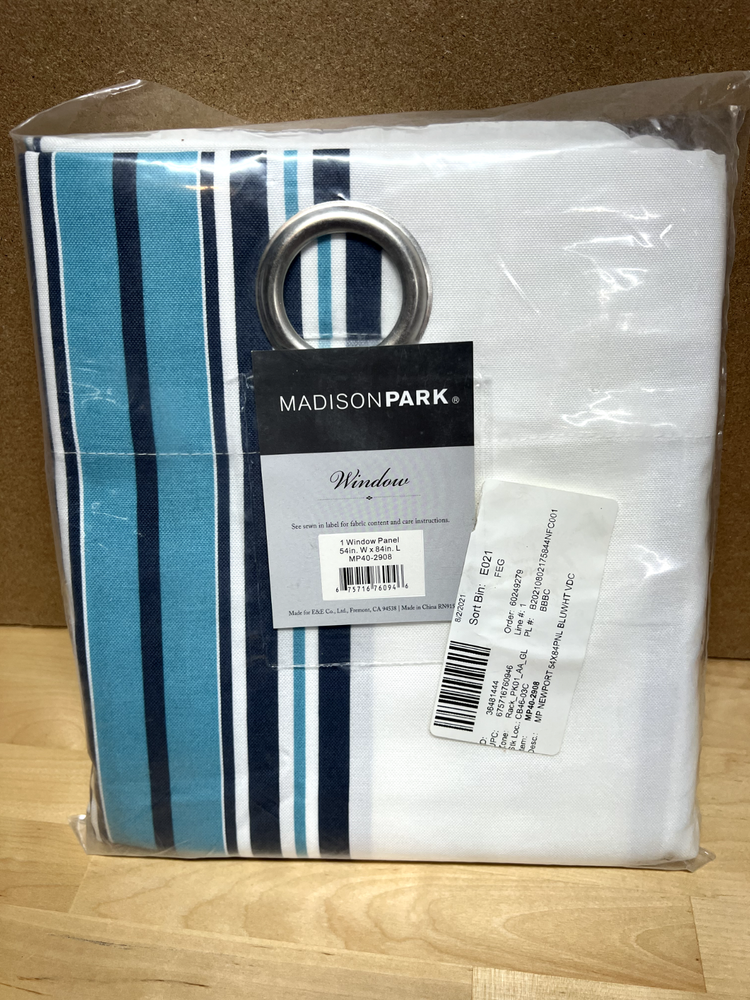 Brand New About This Product Style your outdoor space with our cool stripe Bolinas 3M Scotchgard panel. Blue hue stripes add a colorful update, while weather resistant and long lasting protection provide durability for the whole season. 3M Scotchgard treatment helps repel moisture, resist staining, and provide a durable water barrier that keeps fabric drier longer. Simply hang to stylishly separate your space, enhance privacy, or filter the right amount of light for comfort. Due to the nature of this fabric, requires washing before use; will soften after wash. Machine washable for easy care. Highlights Set includes: 1 Window Panel: 54 in. W x 84 in. L Printed vertical stripe design Lightweight fabric perfect for light filtering 3M Scotchgard treatment for Long lasting protection Weather & Stain Resistant Repels moisture with durable water barrier that keeps fabric drier longer Up to 500 hours of protection from UV Rays Machine washable for easy care