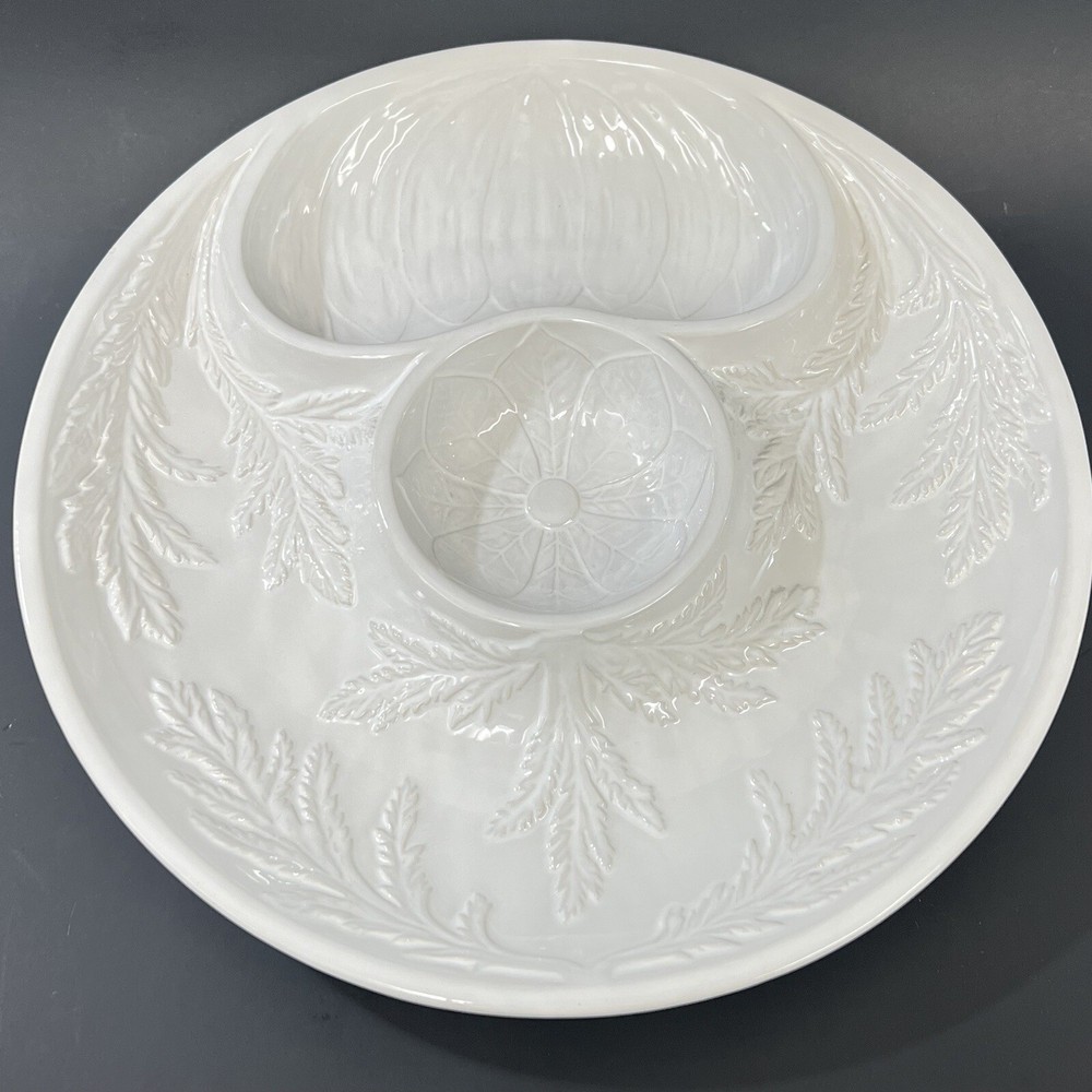 Bordallo Pinheiro LARGE White Artichoke Plate One Piece Chip Dip Bowl 11" WIDTH Made in Portugal This is not an individual size Artichoke Plate, this is a large one.