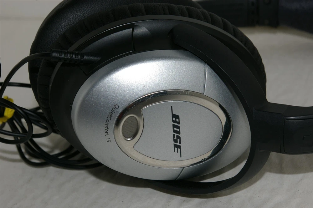 Genuine Bose QuietComfort 15 QC-15 Wired Headband Noise Cancelling Headphones with 2 Installed New Left and Right Ear-Pads Exactly as Pictured. Headphones are Wired and NOT Wireless or Blue tooth. The Carry Case is NOT included. The outer ear cups have a few cosmetic only light scratches as seen in picture #5 but The headphones are in overall good, clean condition and were tested to work perfectly and the sound is excellent. 1 AAA Alkaline Battery is required and NOT included. If you have any questions please feel free to contact me, and please check out my ebay Store for more great deals! Powered by SixBit's eCommerce Solution