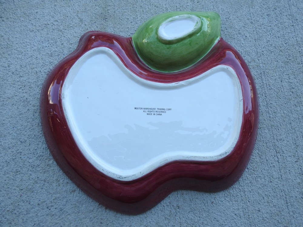 Boston Warehouse Large Apple 1 piece Chip & Dip Salsa Dish Platter 13 1/2" Tall & 14" Wide The item in the pictures is the item you will receive My pictures are a large part of my description Please see Pictures for Plate details & Condition This is a Nice Bowl with 2 tiny flea bites on the edge as shown in last pictures If you wish to purchase additional items put them all in the cart and ask for an invoice then buy all together in one payment will save on shipping fees for you. comes from a smoke free home Please Visit My eBay Store for combined shipping I am adding more items weekly all quality items at great prices stop by often Click here to add me to your favorite lists !! Please also check my feedback and bid with confidence!! I sell quality items at reasonable prices. Please email me with any questions !!! Comes from a smoke -free home IMPORT DUTIES, TAXES AND CHARGES ARE NOT INCLUDED IN THE ITEM PRICE OR SHIPPING CHARGES. THESE CHARGES ARE THE BUYER'S RESPONSIBILITY. PLEASE CHECK WITH YOUR COUNTRY'S CUSTOMS OFFICE TO DETERMINE WHAT THESE ADDITIONAL COSTS WILL BE PRIOR TO BIDDING/BUYING. You will love the shipping price on this item. Use the shipping calculator with (No hidden fees here). I GLADLY combine auctions for you to help save shipping fees. PLEASE email me that you are still bidding and then wait till all your bidding is over and email me that you are finished. I will send you a combined invoice with one shipping price. Please pay by the 7th day after auction or I reserve the right to relist the item. Thanks for looking and happy bidding!!