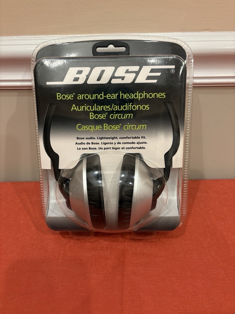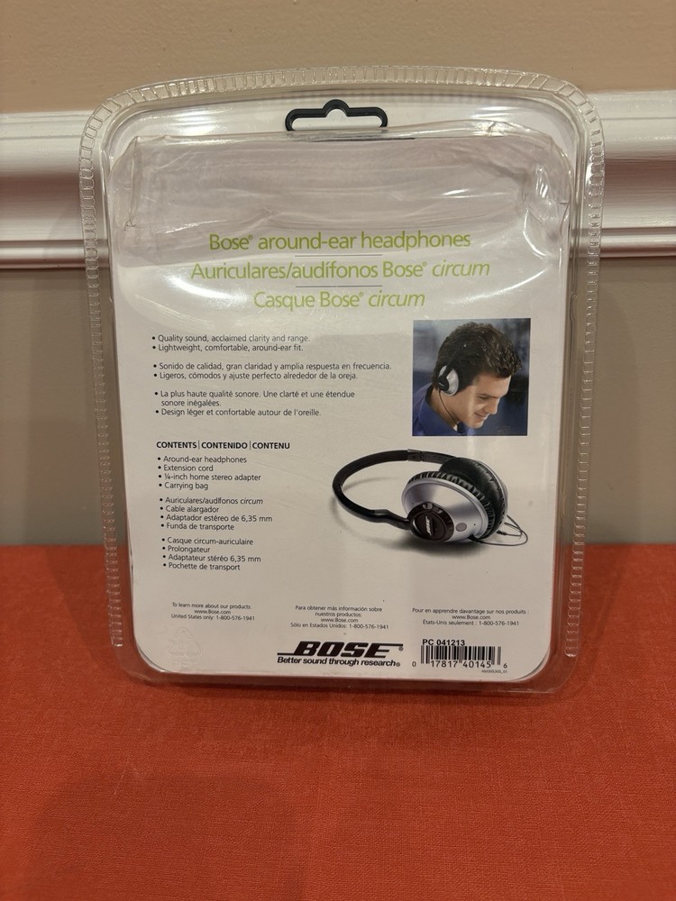 Experience high-quality audio with these brand new Bose around-ear headphones. With sleek black and silver design, these headphones are perfect for any music lover. They come with a 3.5mm jack and a 6.35mm (1/4 in) plug, making them compatible with a wide range of devices. The Bose headphones are designed to deliver rich, clear sound that will transport you to a whole new level of listening experience. Enjoy your favorite tunes, podcasts, and movies with these comfortable and stylish headphones.