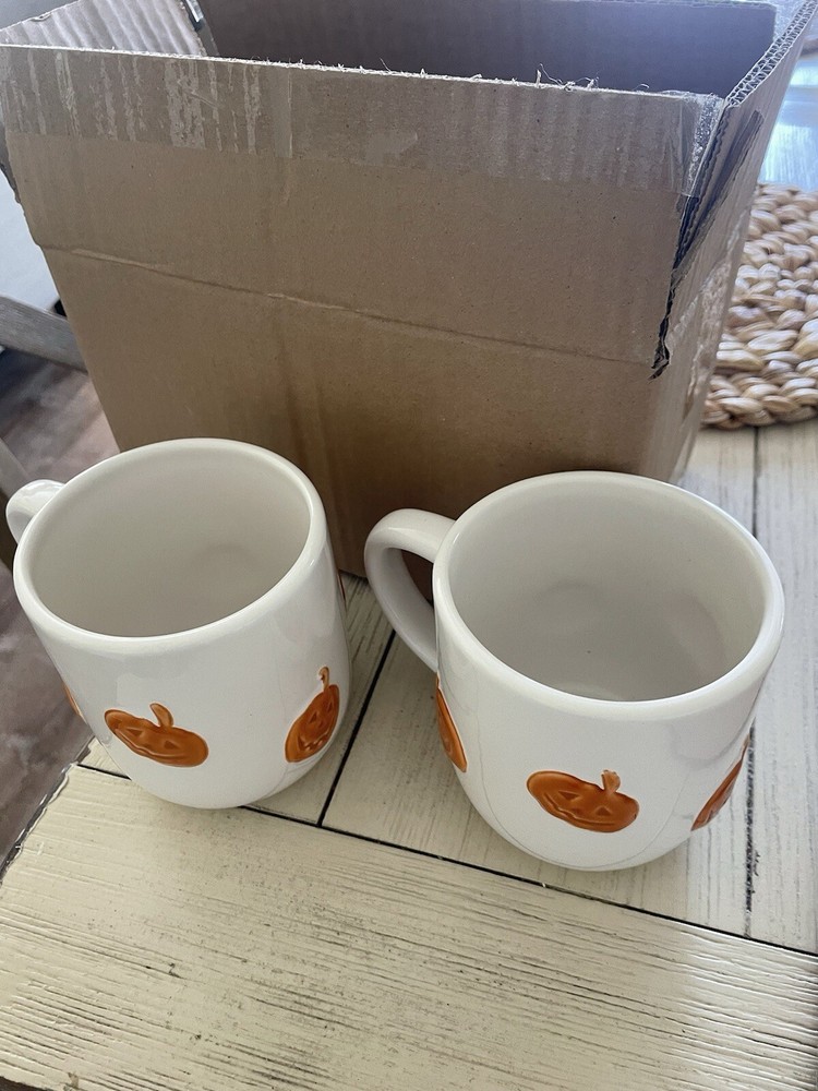 These mugs are absolutely adorable and perfect for fall! The jack-o'-lantern design is so festive, and the quality is amazing—just what you’d expect from Pottery Barn. They arrived brand new in the original box, making them great for gifting or keeping for yourself. Love using them for coffee or hot cider!