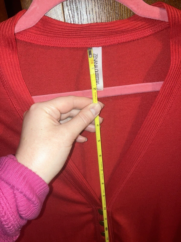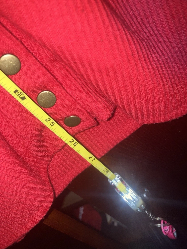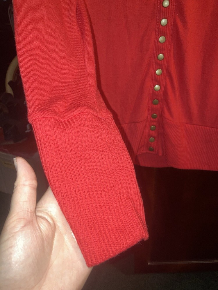 I love the bronze buttons on this sweater! As shown in photos, the length of the sweater from the top to the bottom, is right around 26 inches long, and the plunge from the bottom of the neck is about 10 inches. It is made of 62% polyester 34% rayon & 4% spandex, so it is soft. You do not see sweaters like this in stores anymore! Perfect for wearing over a modest tank. Made in Cambodia. It does have some fuzz balls that can be removed with a fabric shaver, and the fabric is slightly abraised, which is normal for sweaters, but it does look good from afar. There is one part I took a picture of where the threat pulled out where you can see. Price is reflected from what I mentioned above. Price is final, unless I choose to lower it. I do not respond to offers below my asking price. Smoke & cat free home. Find brand new items I offer on my website ChristianBossBabe.com. You will not find these products in stores. Here’s a summary with the best items first! -4000 Gauss Neodymium Magnet EMF Fighting /Pain Relieving/ Jewelry / Dog & Cat Tags -911 Alert/GPS Location Necklaces / Keychains -Bullet Shields, Windshield Breaker / Seat Belt Cutters, Pepper Sprays, Stun Guns, Genuine Leather Purses -100% Herbal: Soap, Lotion, Hair Products, Skincare -Mineral Makeup -Christian Graphic T’s -Leggings As Soft As LuLaRoe, plus bralettes & more! ($10 To Join, No Fees Or Quotas) -Christian Owned Boutique