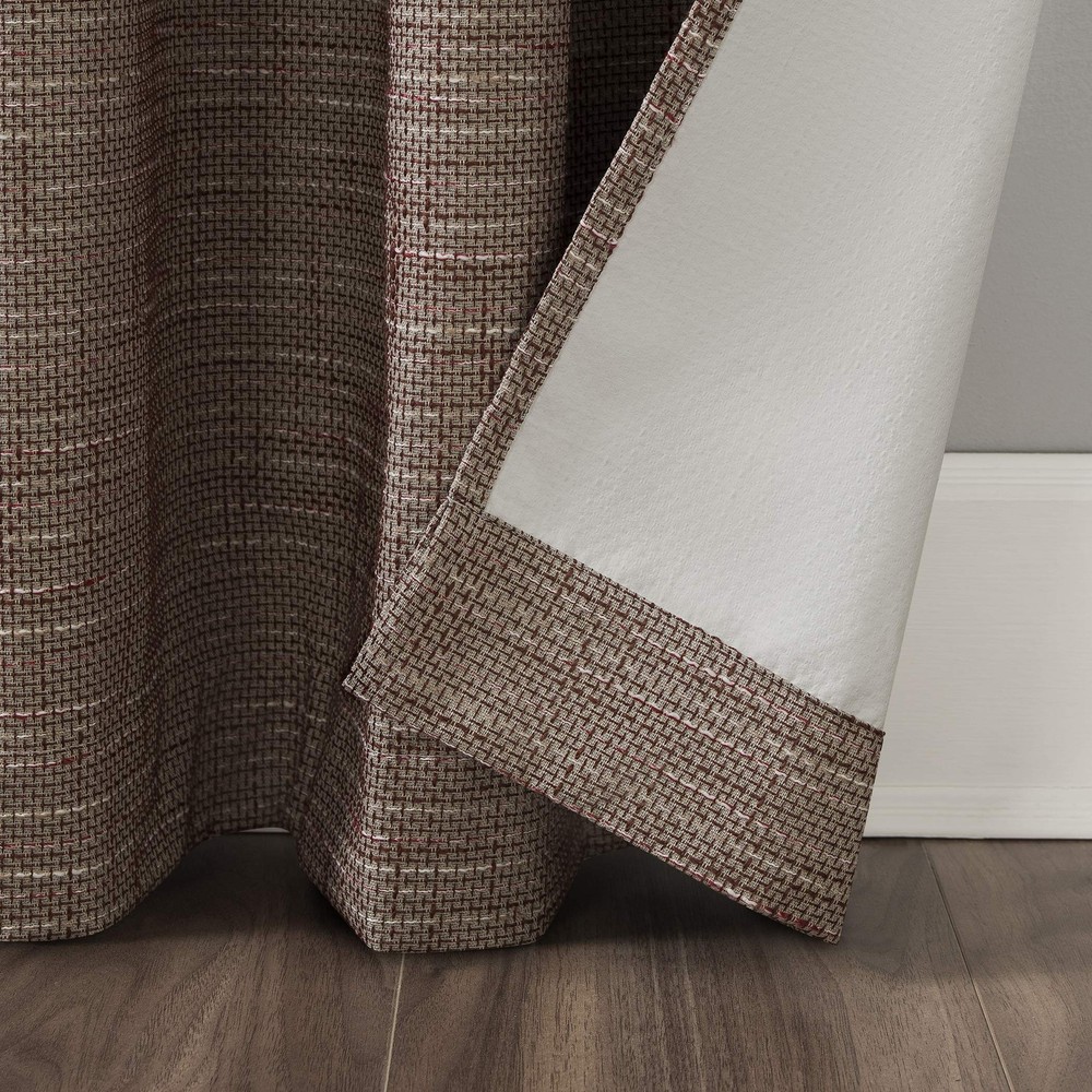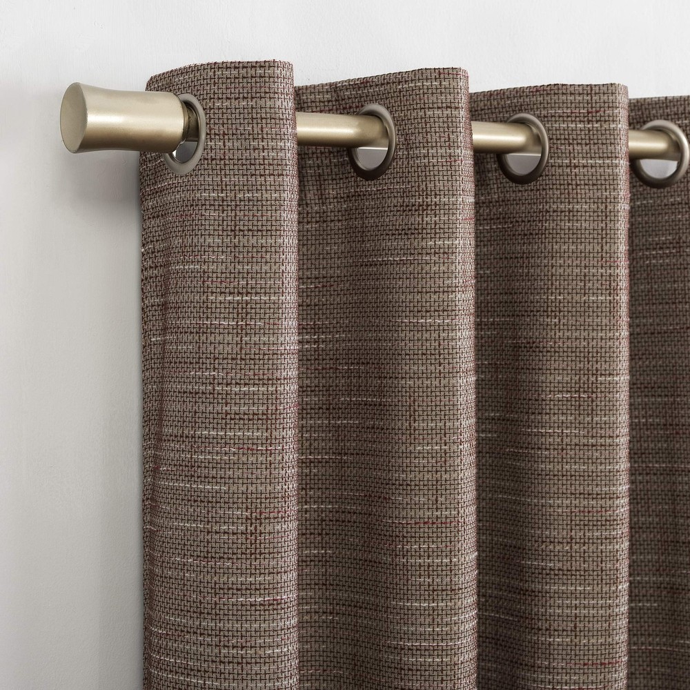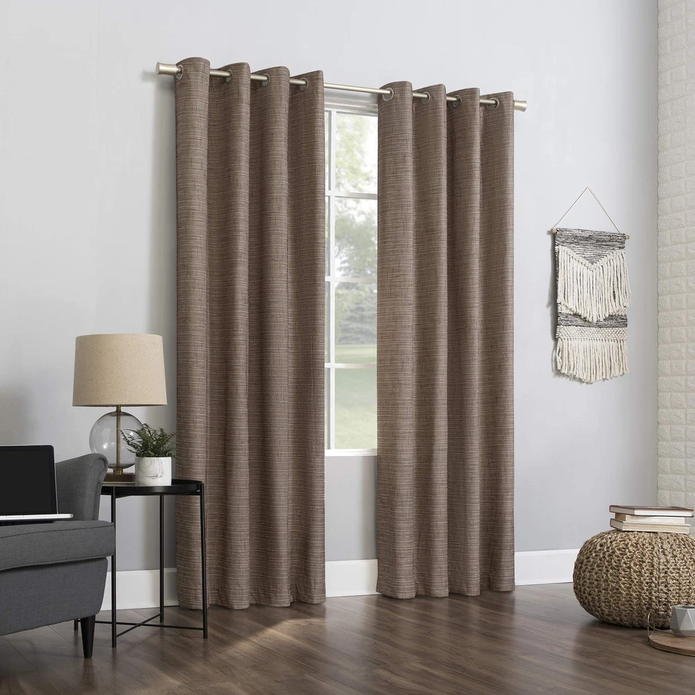 Intersecting burlap weave texture adds a hint of rustic chic Extreme Thermal Blackout technology blocks out 100% of outside light Thermal properties help keep summer heat and winter chill out of your home Noise reduction by up to 40% helps you get a sounder, more uninterrupted sleep Built-in metal grommets fit curtain rods up to 1. 5" in diameter Panels sold individually. Measure carefully prior to purchase. (Image features 2 panels)