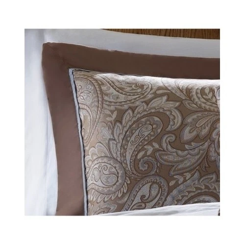 Popular Bed In A Bag Queen 12 PC Comforter Set Flat/Fitted Sheets Bedskirt Shams European Shams Pillows Jacquard Print Brown With Blue Accent ****PLEASE NOTE THAT CARRIERS HAVE TOLD US THAT SHIPPING TO CERTAIN STATES MAY TAKE LONGER THAN USUAL**** Product Description This bedding set highlights a wonderful paisley print that brags a classic traditional style. The set incorporates an extravagant polyester comforter matched with 200-thread count cotton sheets that creates a lavish and luxurious stylistic theme. In rich brown and blue tones, this attractive 12 piece bed set will transform your bedroom with a fresh, new look. Quantities are very limited so pick up this set today and revive your room with an elegant and new motif. Refresh your bedroom today! Key Features Style: Traditional Bedskirt drop length: 15 inches Comforter: 100-percent polyester Sheets: 200 thread count 100-percent cotton Pattern: Jacquard/floral Care instructions: Machine wash Comforter dimensions: 90 inches x 92 inches Bedskirt: 60 inches x 80 inches Shams: 20 inches x 26 inches Fitted sheet: 60 inches x 80 inches Flat sheet: 90 inches x 102 inches Pillowcases: 20 inches x 32 inches Euro shams: 26 inches x 26 inches Neck roll pillow: 6.5 inches x 18 inches Square pillow: 18 inches x 18 inches PLEASE READ==> Shipping and Handling Policy I ship free to the lower 48 states only. I can't combine shipping and I cannot ship to PO boxes or APO. Local pickup is not available. Items are shipped from the US directly from any one of the multiple suppliers I source from. FYI - I am affiliated with and drop ship from several different companies/warehouses. In the unlikely event that the item is delayed or out of stock, the option for a prompt 100% refund will be issued. Once your payment has cleared through PayPal, it will typically take 3-4 business days (Mon.-Fri.) to process your order prior to shipping. Shipping is usually 5 business days (Mon.-Fri.). Please take note that weekends extend delivery time. I appreciate the opportunity to do business with you and hope you enjoy your item! Shipping Address If your shipping address is different than your PayPal address, please add the shipping address to your authorized addresses in your PayPal account. I can only ship to an authorized PayPal address. I do not accept email to change the shipping address. PLEASE READ==> Returns & Problems NOTE: Please research the item before you buy to make sure it is what you want. I am not responsible for buyer's remorse. I can only cancel the transaction within 1 hour after purchase. Customer satisfaction is my top concern. I greatly appreciate positive feedback! In the unlikely event that the item is sold out or on back-order, I will refund 100% of your money immediately. Please send a message direct to me through eBay if an item is damaged, broken, or incorrect so I can promptly track and resolve any issues. Please feel free to message me about any item being in stock or with any questions you may have prior to buying my items. BUYER PAYS FOR SHIPPING ON RETURNS ON UNDAMAGED/UNWANTED ITEMS. ITEM MUST BE SENT BACK IN NEW/UNUSED CONDITION AND SHIPPED IN THE SAME PACKAGING IT ARRIVED IN WITH ALL PAPERWORK AND COMPONENTS INCLUDED FOR A FULL REFUND.