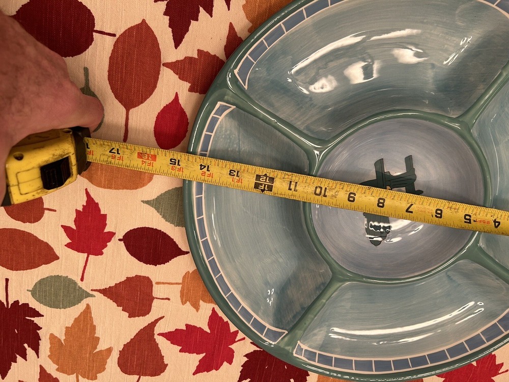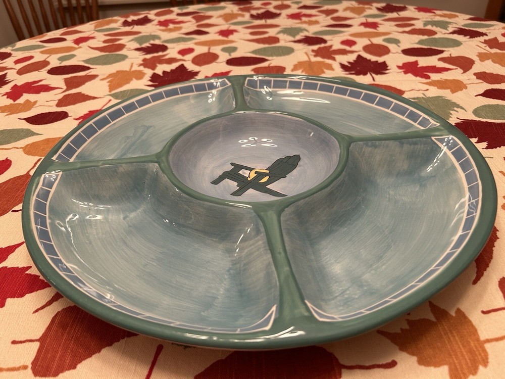 Brushes handpainted Stonemite Chips And Dip 15” Serving Large Plate. Condition is Used. Shipped with USPS Priority Mail.