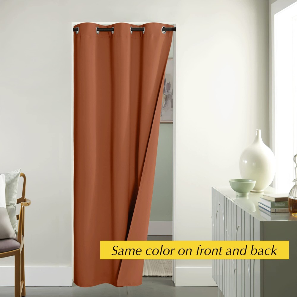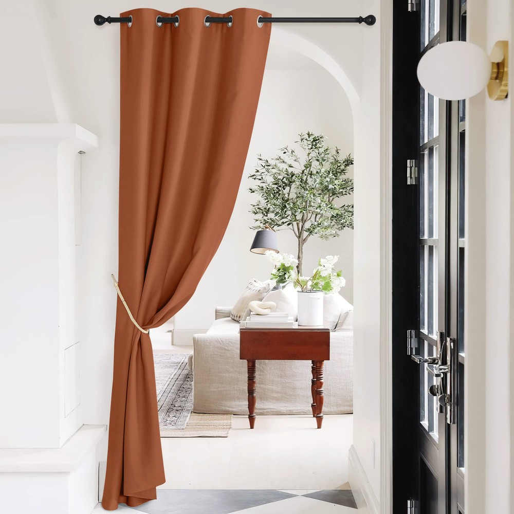 This curtain is a game-changer! The thick, triple-weave fabric blocks out sunlight and UV rays amazingly well while keeping drafts and heat out. The burnt orange color adds a stylish pop to my door, and the grommets make installation super easy. It fits perfectly and gives me total privacy—no more peeking through sidelights. Super functional and looks great!
