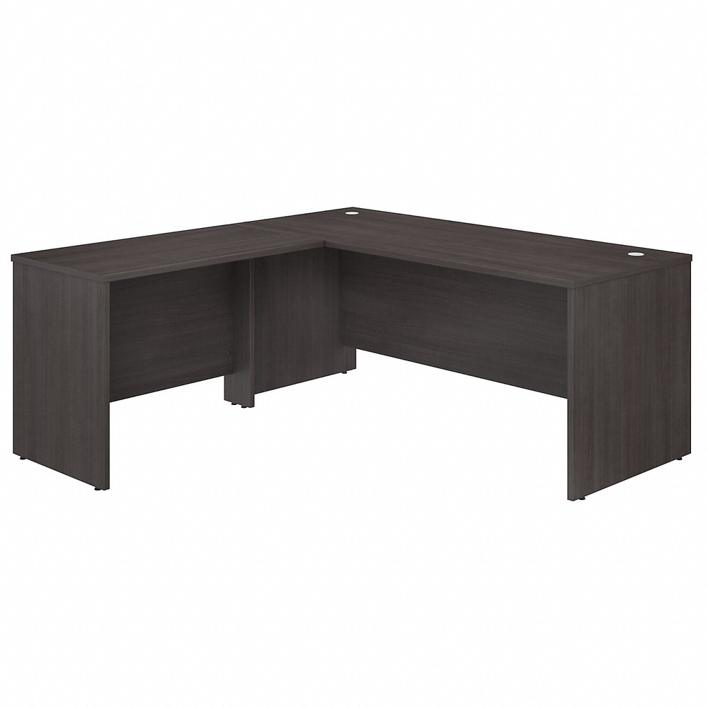 Highlighted by its contemporary style and commercial-quality design, the Bush Business Furniture Studio C 72"W L-shaped desk with 42"W return presents a perfect workspace for the modern professional. Take advantage of the spacious surface to spread out with a computer, paperwork, and more as you tackle your next big project. The L-shaped desktop easily accommodates multiple monitors and other materials with a 200 lb. weight capacity and built-in wire management grommets. Position the L-desk in a corner to save space in a small private office, or make use of the finished back to face outward in an open-plan environment... eBay STORE ABOUT US SAVE SELLER CONTACT US Bush Business Furniture Studio C 72"W L-Shaped Desk with 42"W Return, Storm Gray (STC049SG) - Sold as 1 Each Highlighted by its contemporary style and commercial-quality design, the Bush Business Furniture Studio C 72"W L-shaped desk with 42"W return presents a perfect workspace for the modern professional. Take advantage of the spacious surface to spread out with a computer, paperwork, and more as you tackle your next big project. The L-shaped desktop easily accommodates multiple monitors and other materials with a 200 lb. weight capacity and built-in wire management grommets. Position the L-desk in a corner to save space in a small private office, or make use of the finished back to face outward in an open-plan environment. The return can be installed on either side of the main work surface for a right- or left-handed configuration. This corner desk is tested to meet ANSI/BIFMA standards for safety and performance and is backed by a 10-year warranty. American-made with US and imported parts. • L-shaped desk with return presents a great workspace for the modern professional. • Modern-style desk is made of engineered wood in a storm gray laminate finish. • Assembled dimensions: 30"H x 72"W x 71"D. • Desktop includes built-in wire management grommets to keep cords and cables out of the way while you work. • Assembly required. • Meets or exceeds the ANSI/BIFMA standards. • Durable thermally fused laminate surface and sturdy end panels protect the desk from scratches, stains, dings, and dents. • Desk supports multiple monitors and other materials with a weight capacity of 200 lbs. • Return attaches to either side for a right- or left-handed configuration, and the desk is finished on all sides to look great facing any direction. • Available in your choice of white, storm gray, platinum gray, sand oak, harvest cherry, and natural maple finishes. • Add under desk storage with Bush Business Furniture Studio C two- and three-drawer mobile file cabinets; also accepts a coordinating 72"W hutch (sold separately). • American-made with US and imported parts. • Bundle includes: 72"W x 30"D office desk, 42"W x 24"D desk return. • Sold as 1 Each. You may be interested in our other listings on eBay.