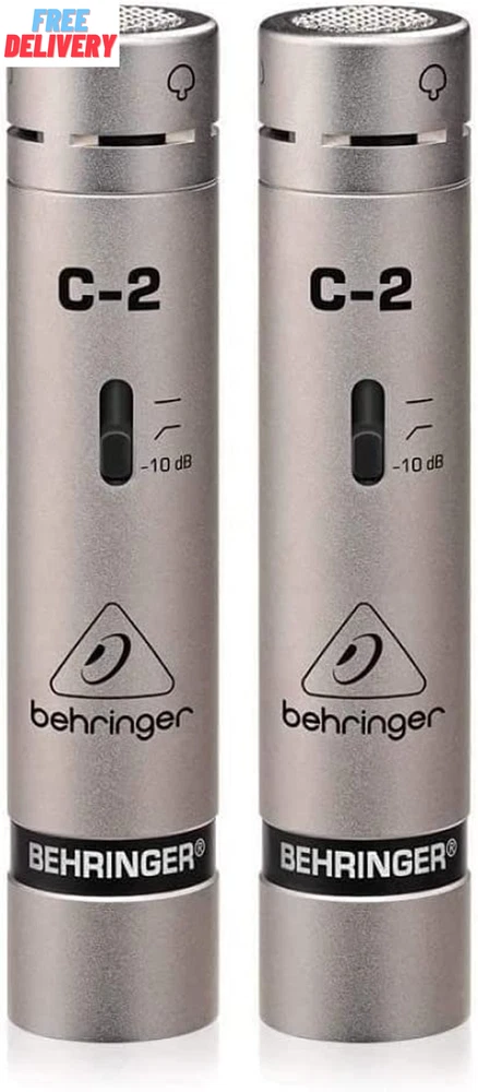 Store New Arrivals Add to Favorite View Feedback Contact C-2 2 Matched Studio Condenser Microphones , Black Description Item model number C-2 Special Feature Stand Power Source Corded Electric Color Black Speaker Amplification Type Active Product Dimensions 11.89 x 5.12 x 3.35 inches Material Type Metal Connector Type XLR Polar Pattern Unidirectional Item Weight 1.65 Pounds Connectivity Technology Wired Model Name C-2 Recommended Uses For Product Streaming, Singing Color Name Black Is Discontinued By Manufacturer No Country of Origin China Included Components 2 Matched Studio Condenser Microphones 2 matched condenser microphones for stereo studio recording and live applications Ideal as main and support microphones for studio and live applications Cardioid pickup pattern for effective feedback elimination Low-mass diaphragm for ultra-wide frequency response and ultimate sound reproduction Switchable low-frequency roll-off and input attenuation BEHRINGER STUDIO CONDENSER MICROPHONES C-2 2 Matched Studio Condenser Microphones 2 matched condenser microphones for stereo studio recording and live applications Ideal as main and support microphones for studio and live applications Cardioid pickup pattern for effective feedback elimination Low-mass diaphragm for ultra-wide frequency response and ultimate sound reproduction Switchable low-frequency roll-off and input attenuation Ultra low-noise transformerless FET input eliminates low-frequency distortion Ultra-rugged construction with metal die-cast body Gold-plated 3-pin XLR connector for highest signal integrity Our C-2 microphones are built to capture the performance of a choir, piano or any other vocal or acoustic sound source to provide a beautiful true-to-life sound. Sold in perfectly matched pairs, these condenser mics are outstanding in both live and studio applications. What is a Condenser Microphone? A condenser mic is the ideal choice for capturing vocals or acoustic instruments, either in live or recording settings. By their very nature, condenser microphones are much more sensitive than dynamic microphones, enabling them to pick-up even the subtlest of signals. Thanks to their cardioid (heart-shaped) pattern, C-2 microphones pick up your source signal while rejecting off-axis sounds that can ruin an otherwise perfect recording. Another difference between condenser and dynamic mics is they contain active circuitry that requires phantom power (+48 V DC) for operation. You can power them from any phantom power equipped BEHRINGER XENYX mixer, plus enjoy the benefits of our state-of-the-art XENYX mic preamps. Sound That Astounds Every stitch of these mics is designed to deliver beautiful sound. Beginning with the gold-plated 3-pin XLR connector, you get the highest signal integrity. Once connected to your system, you'll notice these twin pro-caliber microphones have a 4 dB boost in the 1 kHz - 8 kHz range. For those of you new to condenser mics, this basically means you'll get a slightly brighter sound that will give the perfect shape to cymbals and overhead miking. Acoustic pianos and choirs also benefit greatly from this type of frequency response. Excellent Source Isolation The cardioid pickup pattern provides unparalleled sound source separation and feedback rejection. C-2 mics contain ultra low-noise transformerless FET input circuitry that can handle extreme dynamics with a maximum sound pressure level of 136 dB. So even if the featured performer at your next recording session or live show happens to be a revved-up jet engine, this workhorse mic will not distort! Our C-2 mics also feature a low-frequency rolloff switch to eliminate infrasonics (mic handling noise, sound created by creaky stages), as well as a switchable -10 dB input pad to accommodate hot signals, such as a really loud vocalist or overzealous cellist. Value The C-2 mics not only sound great, they come packed with custom stand adapters, windscreens, a stereo bar for mounting both mics in stereo alignment, and a transport case. As soon as you take them out of the box, these mics are ready to become a mind-blowing addition to your sound arsenal. Check them out at a BEHRINGER dealer near you. ABOUT US Welcome to ChuggaBizz, your global one-stop shop for quality products! We offer a wide variety of items from electronics to fashion, home decor to outdoor gear, and more. Our mission is to provide a seamless shopping experience, competitive prices, and excellent customer service. We ship worldwide, ensuring hassle-free shopping for our international customers. Customer satisfaction is our top priority, and our dedicated team is here to assist you. Thank you for choosing ChuggaBizz, and happy shopping! SHIPPING It's Important to start by clarifying that your order processing times are separate from the shipping times they see at checkout. About handling and transit time After you confirm the order, we will process your order within 1–3 days (Monday-Sunday). So please allow us to send your order within 7-9 business days after placing the order. The order cut-off time The order cut-off time will be 12:00 AM Pacific Standard Time (Los Angeles) every day. About Shipping fee Free Shipping On All Orders. Parcels Damaged In Transit If you find a parcel is damaged in transit, if possible, please reject the parcel from the courier and get in touch with our customer service for a replacement or re-delivery. If the parcel has been delivered without you being present, please contact customer service with the next steps. Include any pertinent information towards the beginning, such as potential delays due to high volume of order or postal service problems that are outside your control. Still, have questions? Please Contact Us. RETURNS Hereat ChuggaBizz, we believe in offering our customers the best shopping experience possible. That’s why we offer a 30-day return policy on all purchases. If you are not completely satisfied with your purchase, you can return it to us within 30 days 