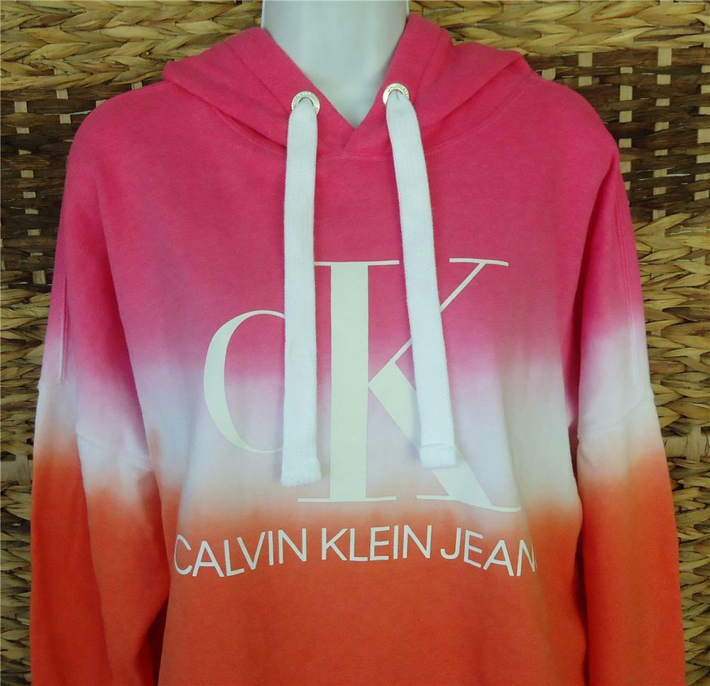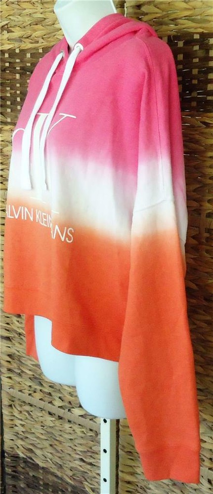 CALVIN KLEIN JEANS WOMENS TIE DYE LOGO CROPPED HOODIE SWEATSHIRT XL NWT $69 CALVIN KLEIN JEANS WOMENS DIP DYE LOGO PULLOVER SWEATSHIRT HOODIE XL NWT $69 Click images to enlarge Description Bright and vibrant, this Calvin Klein Jeans dip dyed logo graphic pullover hoodie sweatshirt is the perfect match for jeans. Bust: 25-1/2" Underarm to Underarm Mid-Section: 24-1/2" Across Sleeve: 22" Hemline: 24-1/2" Across Length: 19-1/2" (Measured From Back Neckline to Hemline) . Style #: CJ9T1062 . Size: XL . Color: Berry Sorbet Combo (Pink, White, Orange) Dip Dye . 60% Cotton/40% Polyester . Attached Hood with Drawstring . "CK, Calvin Klein Jeans" Logo Graphic at Center Front . Long Drop Shoulder Sleeves . Rib-Knit Trim at Cuffs and Hemline . Cropped . Pullover Style . Oversized Fit . Care Instructions: Machine Wash Cold. Tumble Dry Low. . New With Tags! MSRP: $69.50 Payment I accept PayPal *Only*. PAYMENT MUST BE RECEIVED WITHIN 2 (Two) DAYS AFTER CLOSE OF AUCTION, otherwise item will be relisted and you will be turned over to eBay as a non-paying bidder. Shipping Shipping is with USPS Mail. A USPS Delivery Confirmation Number will be provided and entered on eBay the same day the item is shipped. All items will be shipped within 1 (ONE) day of payment receipt, excluding Sundays and USPS observed holidays. I do offer combined shipping, within reason. Combined shipping discounts will be calculated at the time of payment, according to item quantity and weight. Terms of Sale Your complete satisfaction is important. Please take the time to review the auction description and pictures before making a bid. Feedback will be left once I know you are completely satisfied with your purchase. About Us All of my items are brand new and have never been used unless otherwise specified in the description. I inspect, thoroughly photograph and accurately describe each piece. All handbags and accessories are purchased from major department stores. They are genuine, 100% AUTHENTIC. No fakes, replicas, or knock-offs. Contact Us Communication is important to me. If you have any questions please feel free to email me. I will respond promptly and do my best to answer any questions you may have. If you are not 100% satisfied with your purchase, please contact me so that a positive solution can be worked out. HAPPY BIDDING TO ALL AND HAVE A FUN DAY! Get images that make Supersized seem small. Showcase your items with Auctiva's Listing Templates! THE simple solution for eBay sellers. Track Page Views With Auctiva's FREE Counter