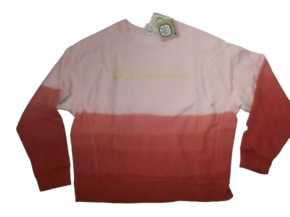 Brand new with tags attached, 100% Authentic Guaranteed, Womens CHAMPION Reverse Weave "Dip Dye Ombre" Crew Sweatshirt Size ~ Large Measurements ~ Underarm to underarm 24 ", Collar to bottom 24" measured center back Color ~ Groovy Papaya in a Ombre pattern/Champion Name in Script across chest(Gold Color) Item Description Reserve Weave fabric that's shrink-resistant, durable and made to last. Heavyweight (12 oz./340gms) 1X1 rib side panels for maximum range of motion Fabric cut on the cross-grain to reduce length shrinkage Double needle construction C logo patch at left sleeve & chest Material: 91 % Cotton / 9% polyester; 1x1 rib 100% cotton Thank-you for looking !! Please email with any additional questions INTERNATIONAL SHIPPING Shipping time is sometimes longer than expected due to delays in customs. Import duties, taxes, and customs charges are not included in the shipping charges and are the buyer's responsibility.