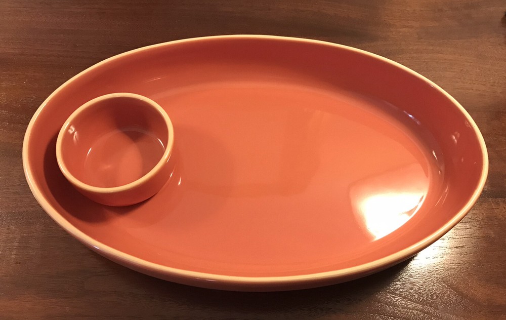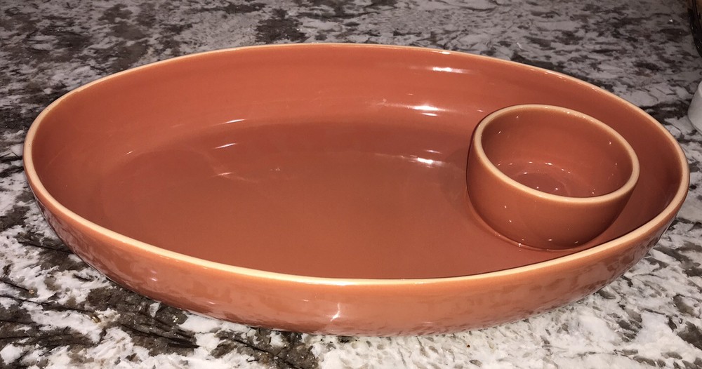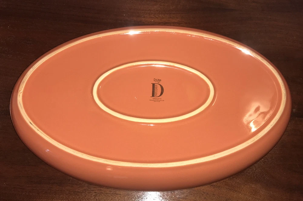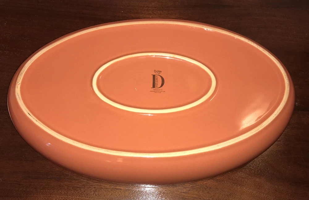 Charming D-Lites Terracotta by Studio D Portugal large oval chip and dip serving bowl. VERY large and heavy to ship. For replacement, adding to your Terracotta set - and a lovely serving piece to display in your home! We mostly use new boxes but sometimes ship in clean recycled boxes.