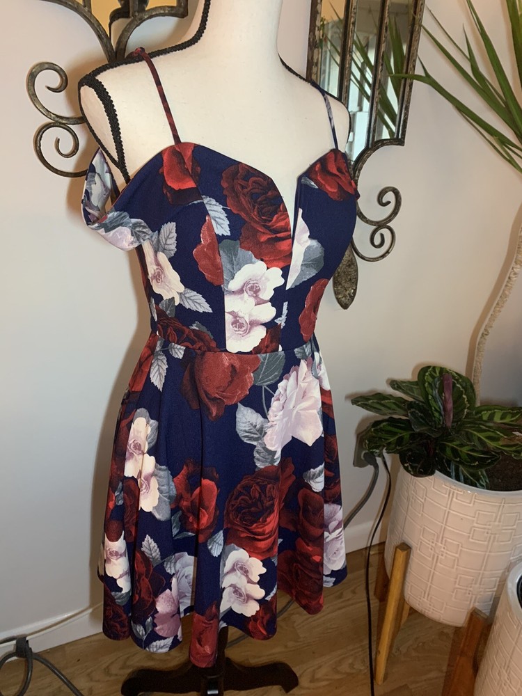 CITY STUDIO $69 Womens New Navy Floral Fit + Flare Dress 9 Juniors. Condition is "New with tags". Shipped with USPS Priority Mail....