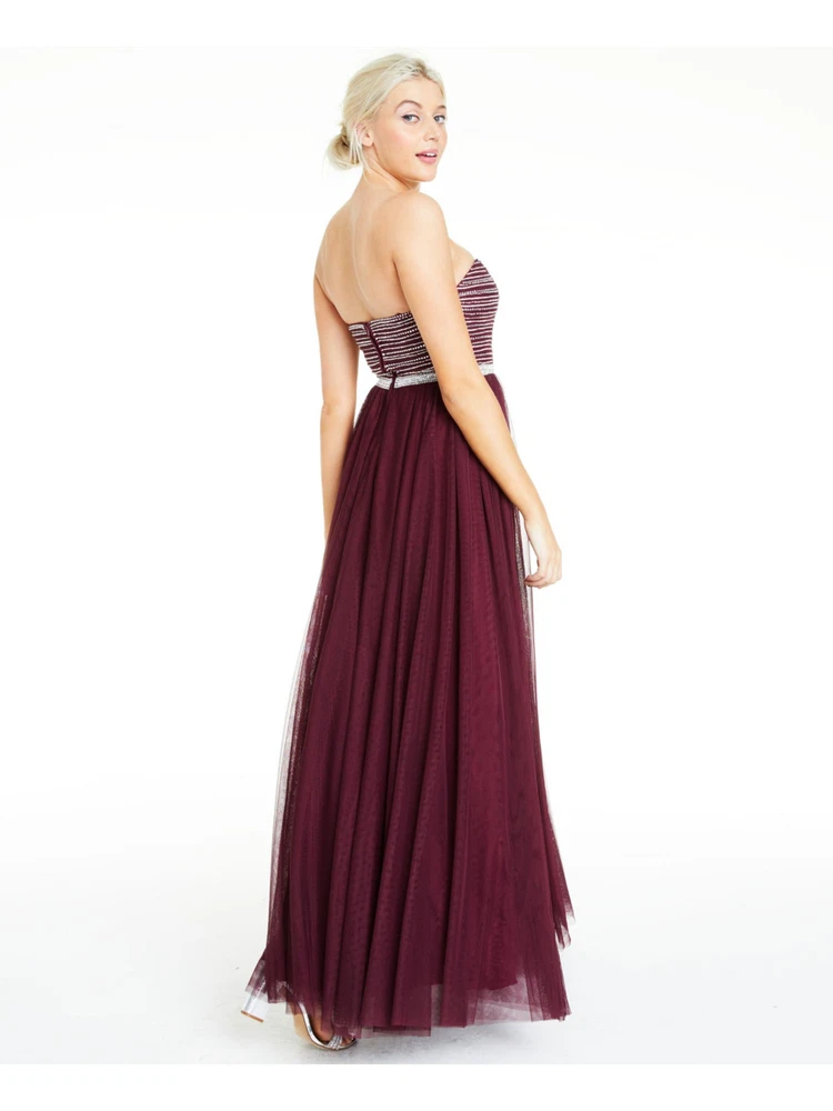 This dress is absolutely stunning—the deep burgundy color is rich and elegant, while the beaded detailing adds just the right amount of sparkle. The sweetheart neckline and sleeveless design make it flattering, and the mesh fabric drapes beautifully. Perfect for formal events, it fits true to size and feels luxurious. Definitely worth it for a glamorous night out!