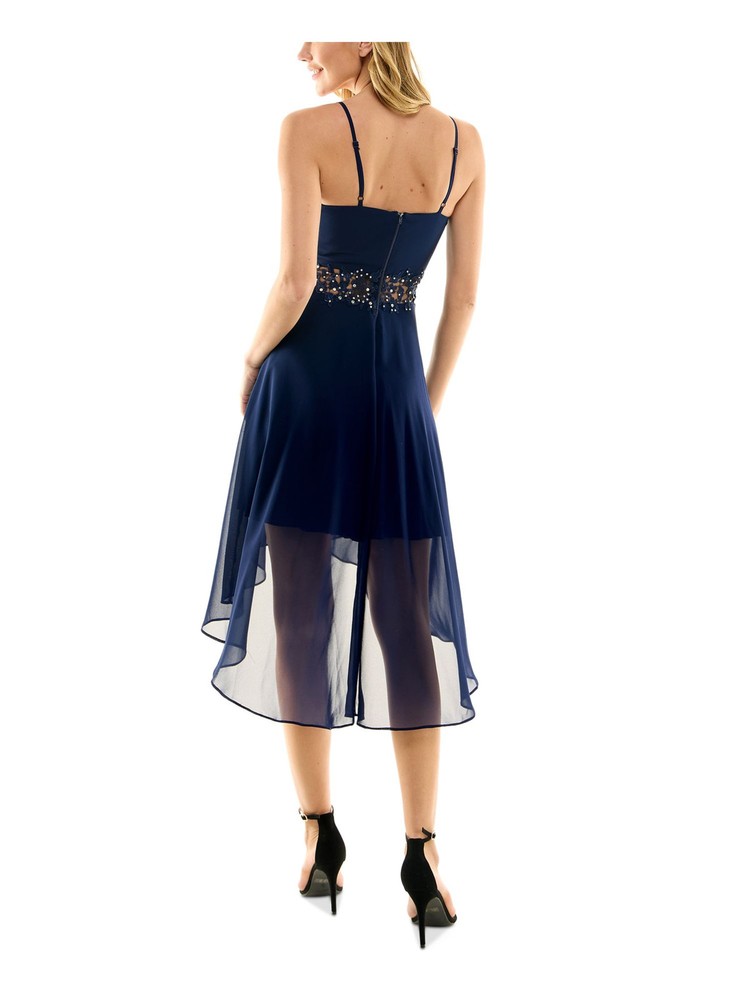 This dress is absolutely stunning! The asymmetric hem adds a chic, modern touch, while the sweetheart neckline and spaghetti straps keep it feminine and flirty. The fit-and-flare silhouette hugs in all the right places, making it perfect for parties or date nights. The navy blue is versatile and elegant, and the zippered detail gives it a stylish edge. Even though it's dry clean only, the quality and design make it worth the extra care. Love how it stands out while still being comfortable!