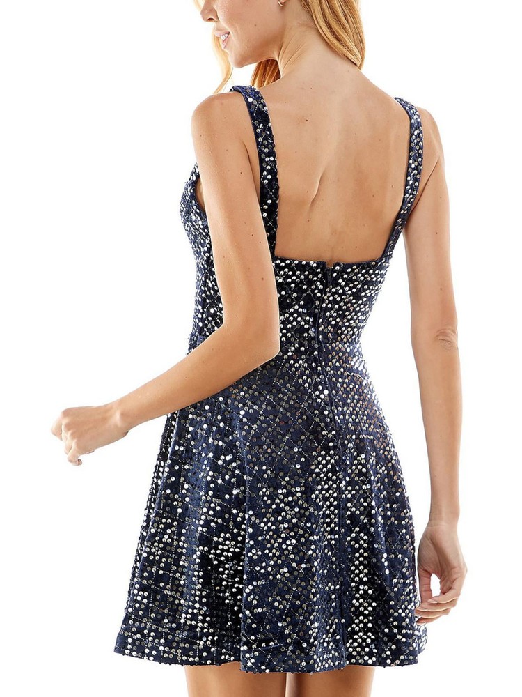 Absolutely love this navy dress! The fit-and-flare style is so flattering, and the sequin details add just the right amount of sparkle. The sweetheart neckline is elegant, and the lining makes it feel luxurious. Perfect for a night out—looks way more expensive than the price!