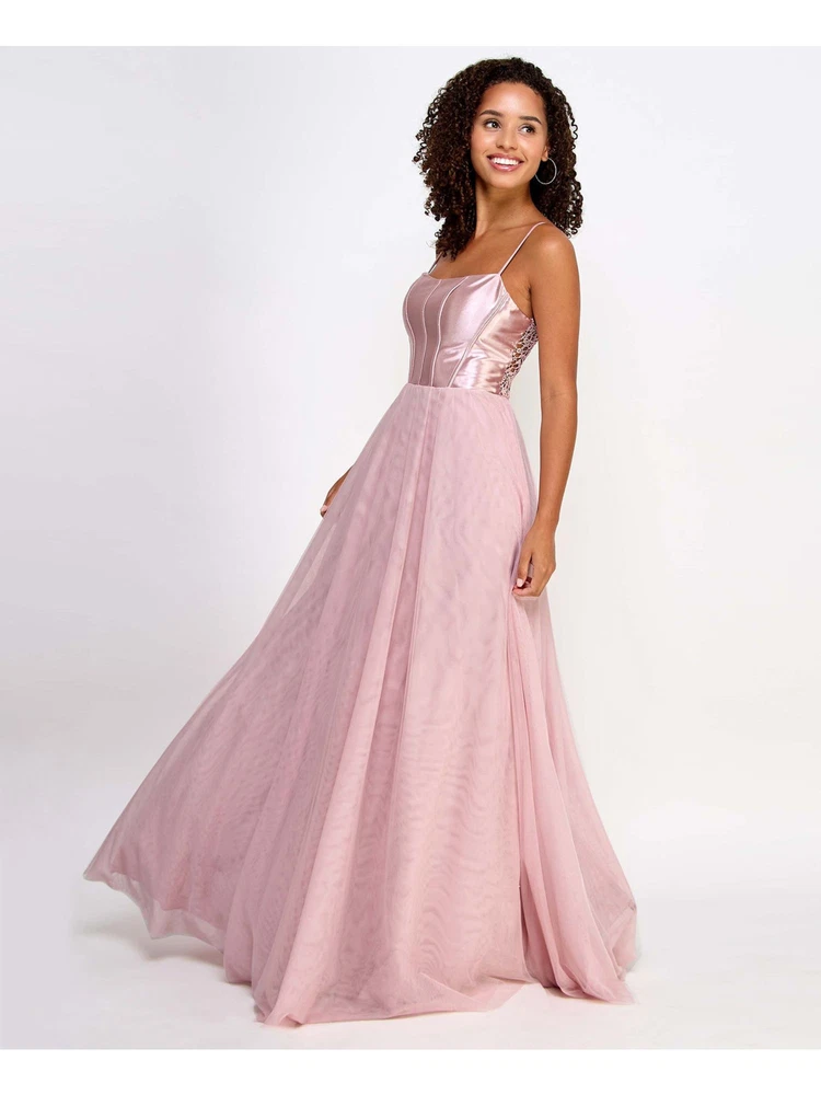 Absolutely stunning dress! The sweetheart neckline and metallic corset add such a glamorous touch, while the adjustable fit ensures comfort. The sheer mesh lining gives it a delicate, elegant look—perfect for formal events. Love the A-line silhouette; it flatters every figure. Feels luxurious and fits true to size. A must-have for any special occasion!