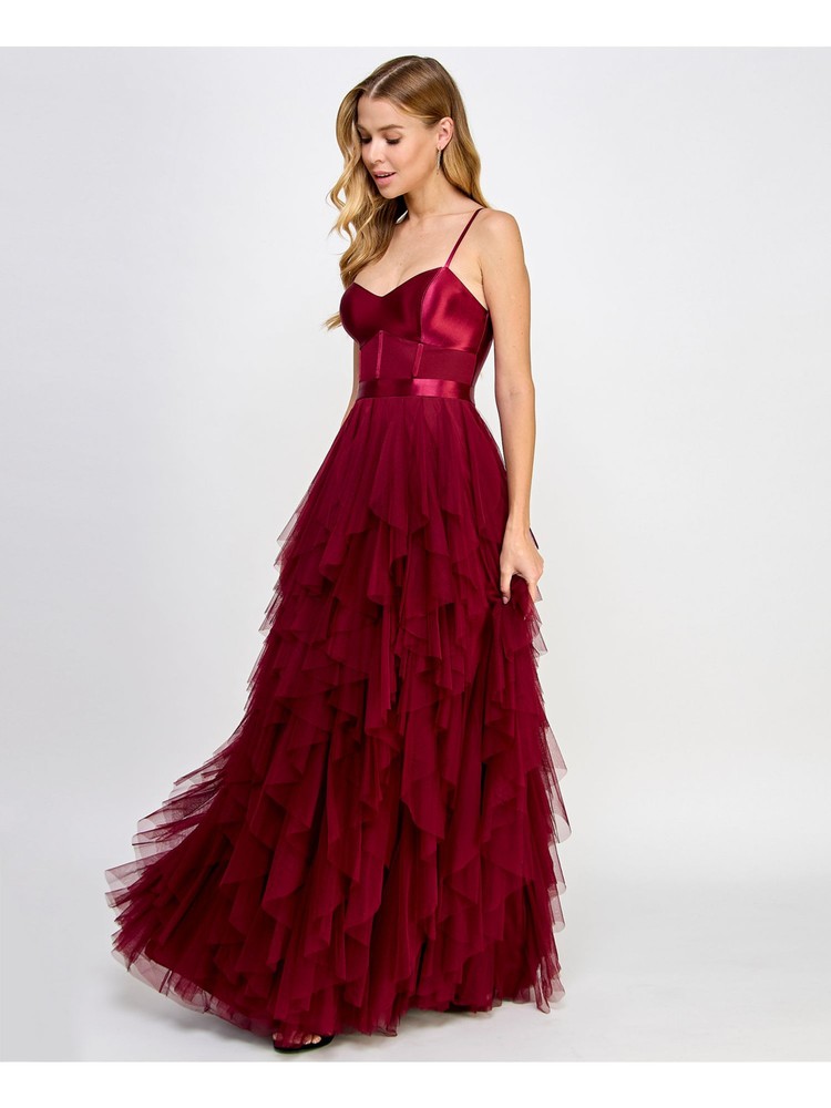 This stunning red corset-style dress is a showstopper! The sweetheart neckline and cascading ruffles add a romantic, elegant touch, perfect for special occasions. Though it has a minor clasp issue and fabric flaw, the dramatic silhouette and high-end design make it a steal compared to the original retail price. The spaghetti straps and fitted bodice create a flattering look, while the dry-clean-only polyester ensures easy care. A gorgeous statement piece with a little TLC needed!