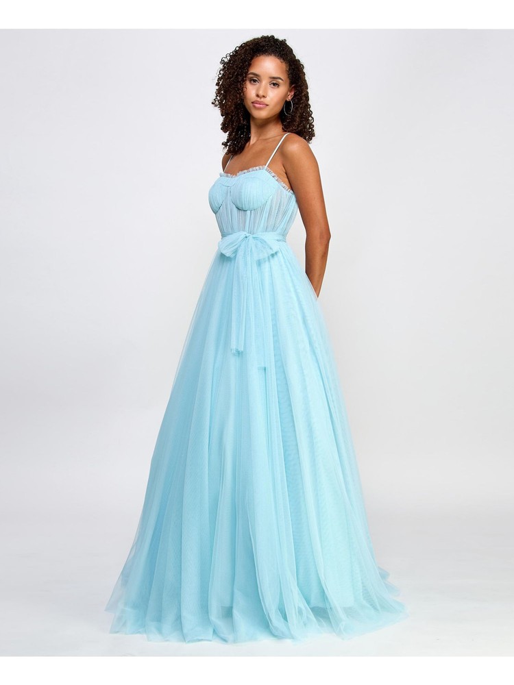 This dress is absolutely stunning! The light blue color is so elegant, and the ruffled sheer bodice adds a romantic touch. The fit-and-flare silhouette hugs in all the right places while still being comfortable. Perfect for formal events—I felt like a princess wearing it! The spaghetti straps and sweetheart neckline make it feminine and flattering. Definitely worth every penny!
