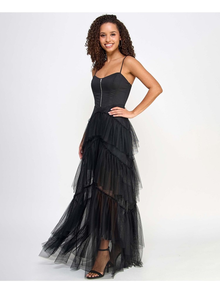 This stunning CITY STUDIO gown is a showstopper! The sweetheart neckline and tiered ruffles add elegance, while the spaghetti straps keep it effortlessly chic. The zipper detail gives a modern touch, and the polyester fabric drapes beautifully. Perfect for formal events—it fits like a dream and turns heads all night. Dry clean only to keep it looking flawless. Absolutely worth every penny!