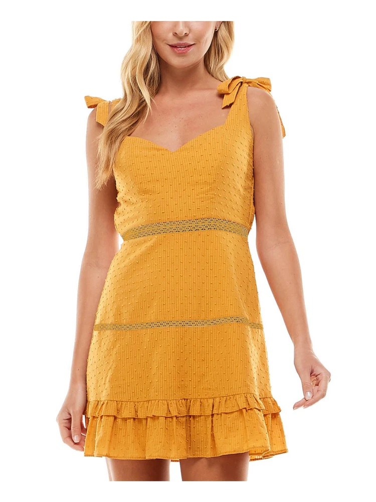 This cute dress is perfect for summer! The sweetheart neckline and lace details give it a flirty charm, while the fit-and-flare shape hugs just right. The lightweight cotton keeps me cool, and the tied shoulder straps add a fun touch. It’s such a versatile piece—great for brunch, dates, or even a casual wedding guest look. So comfortable and easy to throw on, and the textured fabric makes it feel extra special. Love the yellow shade—bright but not overwhelming. Definitely worth it for the price!